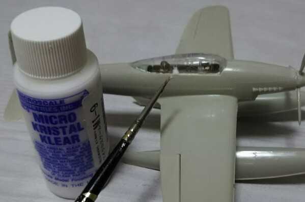 パイロットを塗装して取り付けてから、風防を取り付けました。