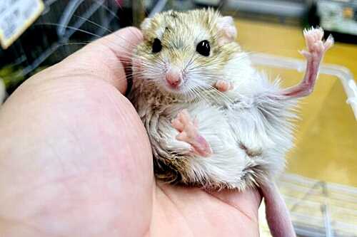 "マウス"ですから、ネズミさんなんですが、この正式名称「ファットテールジャービル」と云うネズミさんが、なぜマカロニマウスかと云うと、その毛の少ない太く膨らんだシッポがマカロニみたいだからです。 ![]() ![]() 身体の大きさは10~13cm 、シッポの長さは5~6cm 、体重は野生では22~45g くらいですが、とにかくよく食べるのでペットとして飼育すると55~82g にもなります。 ![]() ![]() 野生だと地面に穴を掘って生活しており、夜行性の生き物です。 特徴的な毛のないやわらかいシッポには脂肪が入っており、太さの変化が健康状態のバロメーターにもなります。 そもそも正式名称のオブトアレチネズミそのものが"太い尾のスナネズミ"と云うイミです。 スナネズミですから飼育する場合、砂浴び場は必ず設置する必要があります。 ![]() お腹の毛は白く、首のくびれがほとんど無いずんぐりした体型なんですね。 大きなアーモンド型の黒い目をしていて、他のスナネズミと比べて後ろ脚が短くて細いです。 なのでジャンプは苦手だし、骨折しやすいため、回し車やスノコを入れる際は安全に気を配らないといけません。 ![]() なので体臭も無いらしい。 何より仰向けになって死んだように寝ることです。 若いうちは忙しいくらい動き回りますが、齢とともにのんべんだらりと寝てばかし。 その寝姿がなんともカワイイのですね。 ![]() ![]() しかし比較的神経質であるため、無理に触わるとストレスになることもあり、ストレスによって体調を崩さないよう、少しずつ彼らとの距離を縮めていくことが肝要らしい。 ![]() お気に入りの記事を「いいね!」で応援しよう