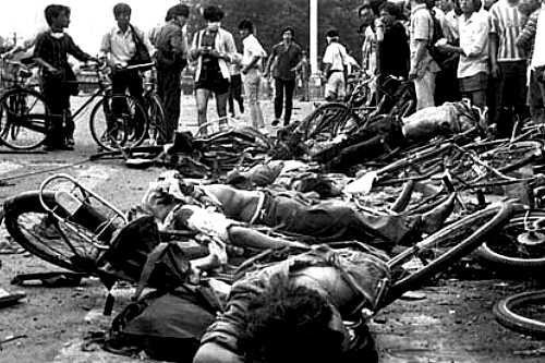 中国語で書くと「中国中央电视台(中国中央電視台)」。 このTV局は1954年に、当時の共産党中央委員会主席だった毛沢東が中国独自のTV局設立を提案し、1958月に放送を開始した歴史の長い局です。 ![]() 「人民日報」「中国新聞社」「環球時報」とともに注意すべき「外国使節団」と指定してます。 CCTVと中国警察は、中国の反体制派、罪を犯したとされる人物への捜査の一環で肉体的・精神的な拷問を伴う強制自白をさせ、その様子を放送してるとしてイギリスやオーストラリア、またアムネスティ・インターナショナルをはじめとする国際的な人権団体が激しく非難しました。 ![]() 鄧小平の後釜、江沢民や、さらに後継の胡錦濤時代にはメディアが世論監視報道することを許されてたからです。 つまり地方政府による市政の乱れや、庶民への弾圧などを報道することが許されてたのです。 なので当時はそう云う報道が多かったのですが、2006年以降、共産党による報道統制のため徐々に減っていき、2012年に習近平が政権を取ってからは共産党の意図する報道しかできなくなったのです。 だからバイデン元大統領が「習近平は独裁者だ!」と云った発言は、中国国内では全く報道されなかったのですね。 それが引き金になってCCTVで正しい報道をしたい記者たちはアメリカや日本に脱出して活動を続けるようになりました。 ![]() それどころか現在の中国人すべてがなかったことにしている、もし口にしようものならたちまち拘束される事件です。 それは当局発表だけでも犠牲者は300人以上、諸外国の情報では数百人から数千人、場合によっては1万人とも云われた「天安門事件」です。 犠牲者の人数がよく分からないのは家族が殺されても当局の弾圧を恐れて届けられなかったからです。 これが起こったのは1989年6月4日なので、「六四天安門事件」とか略して「六四」と呼ばれてる多数の死傷者を出した事件です。 ![]() 民主化の波が遅れて到達した中国国内でも若者の民主化運動の高まりが広がり、民主化を求めるデモが政治改革を求める学生を中心に約10万人の人々が天安門広場に集まったことから始まります。 ![]() デモは最初は天安門広場で、そして広場周辺に集中していたのが、後に上海市を含めた国中の都市に波及していきました。 そして共産党による武力介入の可能性が高まったため、趙紫陽総書記や知識人たちは学生たちに対し、デモの平和的解散を促したのです。 しかし学生たちの投票では強硬派が多数を占め、デモ継続を強行したため首都機能は麻痺に陥いりました。 このころ中国全土から天安門広場に集まる学生や労働者などのデモ隊の数は50万人近くになり、公安(警察)による規制は効かなくなり、天安門広場は次第に市民が意見を自由に発表できる場へと変貌していきました。 それに加えて当時イギリスの植民地だった香港、日本やアメリカなどの諸外国に留学した学生による国外での支援活動も活発化していったのです。 ![]() そうして戒厳令体制の強化が行われることになったものの、戒厳令布告に抗議するために北京市内で100万人規模のデモが行われるなど、事態は沈静化しないばかりか益々拡大して行くのです。 戒厳令の布告によって厳しい報道管制が敷かれ、日本やイギリス、西ドイツなどの西側諸国のTV局による生中継のための回線は次々と遮断されていきます。 それでもアメリカのCNNは、依然として世界各国へ向けた生中継を続けていました。 これに業を煮やした共産党の上層部は、CNNが生放送を行っていた最中に現場に係官と警察官を派遣して、放送を中止するよう命令しましたが、TVカメラが回り続けていたために、特派員のバーナード・ショーらCNNのスタッフと係官のやり取りも、そのまま生中継され中国共産党による報道管制の実態が世界中に発信されてしまいました。 地方から続々と人民解放軍の部隊が北京に集結し、6月3日の夜遅くには、天安門広場の周辺に人民解放軍の装甲兵員輸送車が集結。 完全武装した兵士が配置に着きました。 ![]() ![]() このときにCNNが流したのが、冒頭画像にあった西側通称「タンクマン」対戦車の対峙ニュースです。 この男性の消息は不明です。 Man vs. tank in Tiananmen square (1989) 装甲車が一斉に天安門広場に進撃を開始。 装甲車は道にバリケードを築いていたデモ隊と武力衝突し、デモ隊に多数の死者が出ました。 デモ隊も火炎瓶で応戦し、装甲車が次々に炎上。 デモ隊は炎上した装甲車から飛び出す人民解放軍を殴りつけ、撲殺した兵士に油を付けて燃やし、歩道橋から兵士の死体をぶら下げるなどしました。 解放軍の進行は一旦は数で勝る民衆によって阻止されたものの、その後これらの部隊は中国共産党の命令に忠実に、市街地で民衆に対して無差別に発砲したのです。 それは同国人による虐殺そのものです。 ![]() ![]() ![]() 負傷した女子学生4人が命乞いをしたが、中国軍に銃剣で刺されてしまった。 6月4日未明以降も天安門広場に残った民衆の一部は
