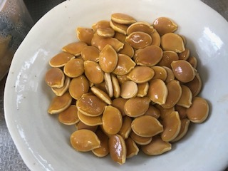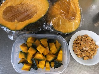 Kさんのブログを読んでいたら、 大好きなトリパチ先生の動画がリンクしてあった。 トリパチ先生の手と足(爪も)のマッサージの動画は全部 覚えてしまったので、もう以前のように毎日見なくても できる。 ひさびさの先生の顔が新鮮 笑。 私もリンクしておこうっと(^^)/ 良質のたんぱく質を含む植物性食品 この中で種(シード)は栄養満点だと言っている。 hemp(麻)、カボチャ、スイカの種がいいという。 植物性の食品でタンパク質を摂るのがなぜいいかというと 体を酸性に傾けることなくタンパク質が摂取できるから と言っている。日本人の不調の原因は体の酸性化。 味噌汁はアルカリ性食品なので体にいい。 日本人のからだは酸性に傾いている 種(シード)はタンパク質だけでなく、 ミネラル、ビタミンA C E B 食物繊維、不飽和脂肪酸などを含んでいて 漢方の世界でも漢方薬ナンカンニンとして知られている という。 私、、、捨ててたわ~カボチャの種もスイカの種も、、、。 食べようと思いながら、カボチャの実ばっかり 食べてた。 かぼちゃの種の美味しい食べ方 検索して出てきた動画を見てやってみた。 ![]() この巨大カボチャをまず切る (大きさがわかるように小玉スイカを置いてみた) ![]() 美味しそうな色(^^)/ ワタの中に種がある。 ![]() でかいわ。食べがいがある。 ![]() 四分の一はチン。 あとは冷蔵庫にしまっておく。 ![]() 綺麗に洗った種 つくり方によると、三日くらい天日干し、、、 (この雨じゃ無理。っていうか早く台風過ぎ去ってくれ) なのでレンジでチンして乾かした。 その後、オリーブオイルで炒めて、軽く塩。 ![]() ちょっと焦げた~ 味?ふ~ん、、、食べれないことはないけど、 それほど美味しくもないな~残念。 ドンキで買ってくるカボチャのシードは美味しいのだけどな~ よく全粒粉のパンを焼いているときに買ってきて入れていた。 そのままも食べれるので今度買ってこようっと。 家だと上手にできないのか?それとも私の料理の腕が 悪いのか?たぶん後者だろうと思う。(しょんぼり(*´Д`) いつもポチをありがとうございます(^^)/ 「いいね!」も押してくれて嬉しいです。 今日も押してくれると喜びます。 にほんブログ村 にほんブログ村 <