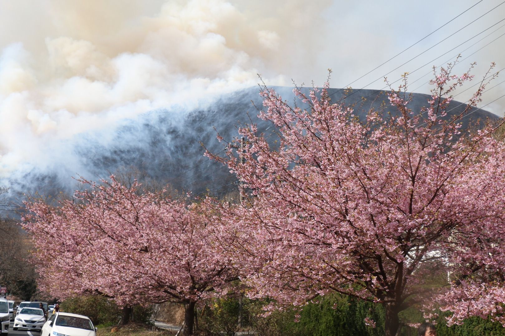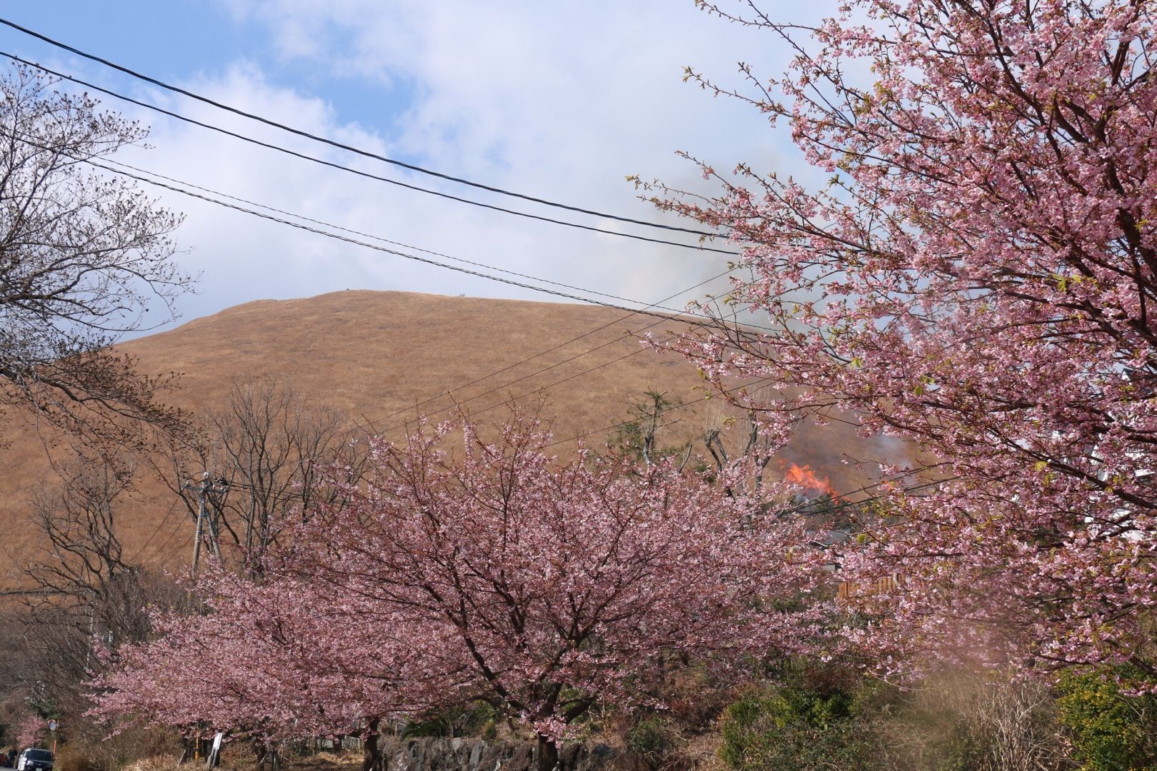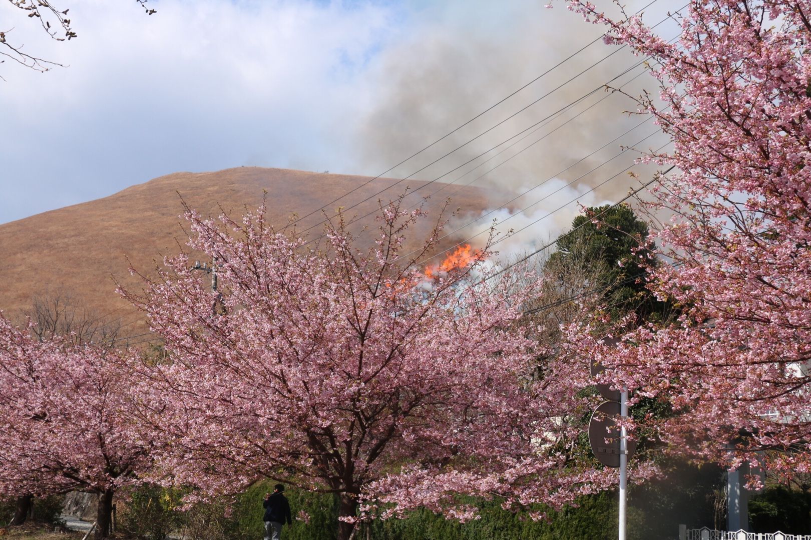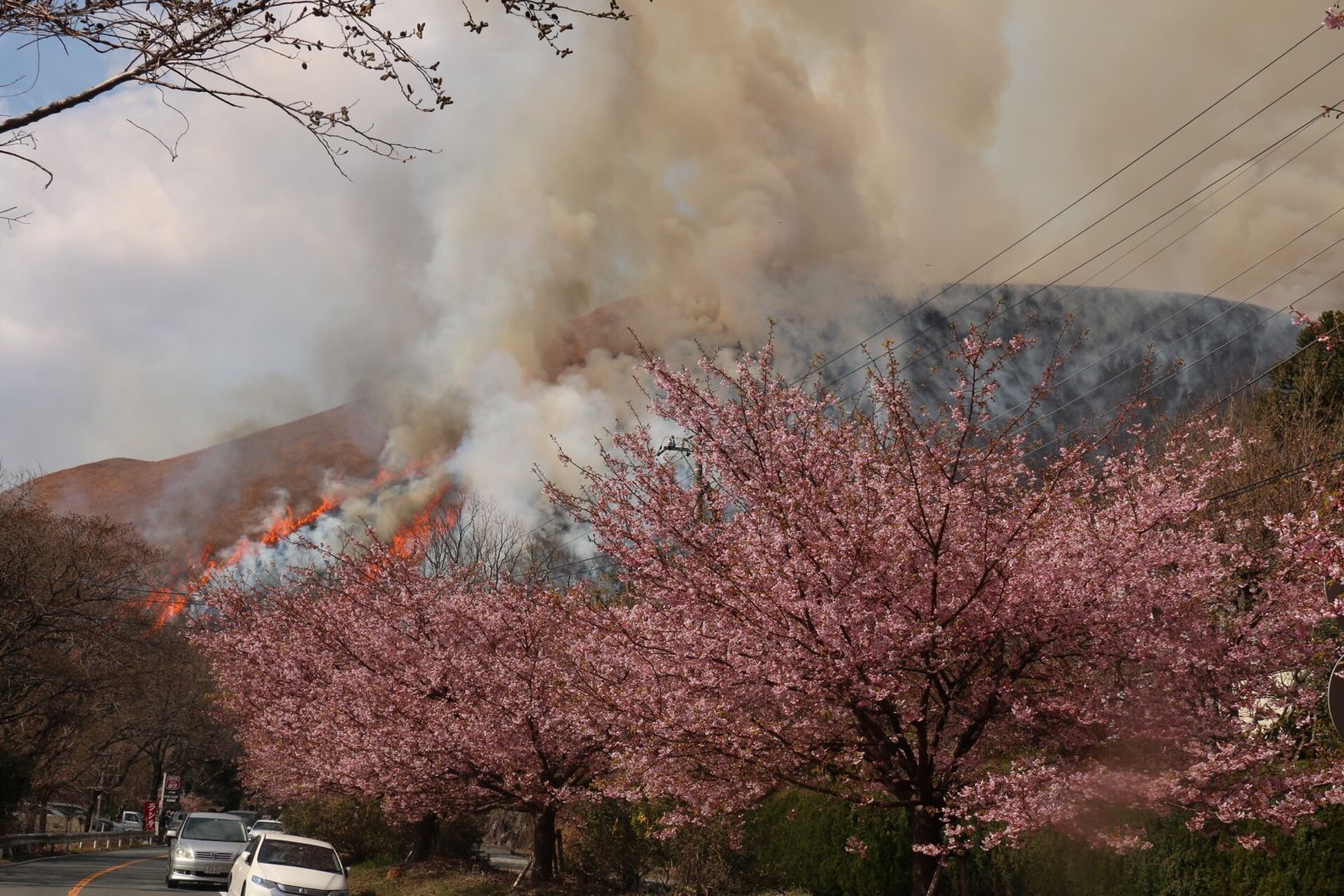 花火の音と共に大室山に点火されました。 近くの桜の里で見学しようかと思いましたが、道が渋滞していたので諦めました。 途中桜がきれいだったのでそこからの見学です。 ![]() 火付けは、日頃 火を消している消防士w と 一般の方の申し込み者(当日先着70名、松明1本1,000円) で行われます。 ![]() テレビ放送用のヘリコプターが飛び交っていましたが、凄い煙です。 無事でしょうか。 ![]() 遂に 真っ黒な大室山に... 30分位の出来事でした ![]() 無事消火、 消防車もお役目終了です。 ![]() せっかくなので 満開の桜 ![]() メジロがせわしく桜の蜜を食いあさっていました。 ![]() 写真は 大室山周辺の道で『遠笠道路』 です。 河津桜情報は↓こちら 河津桜まつり(河津町) お気に入りの記事を「いいね!」で応援しよう