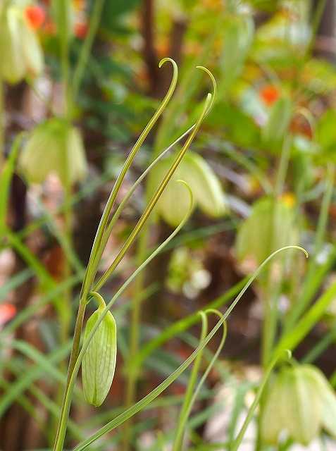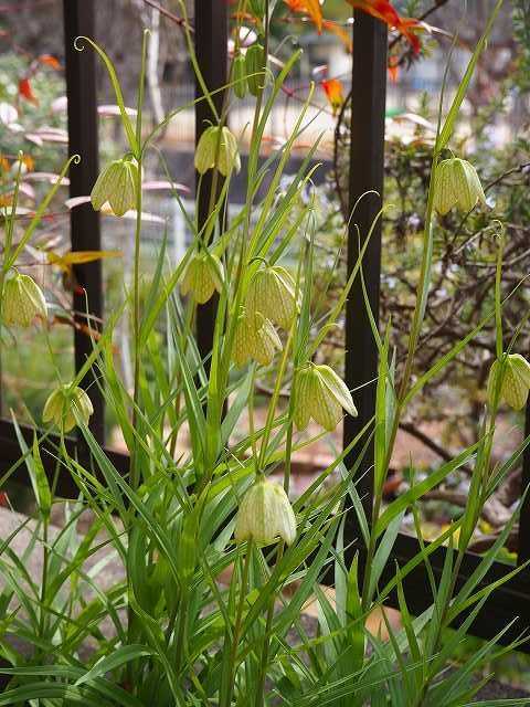 冬に戻ってしまったぁ~~。 強風が吹き荒れ、みぞれが降り、 寒い寒い。 夜中も突然稲光・落雷・豪雨。 なんという悪天候!! 花が倒れてる気がする。 きのう撮っておいた写真です。 バイモユリ