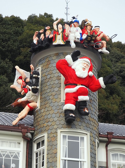 『世相サンタクロース』が有名です。 今年のサンタさんは、 大谷翔平が出塁したときの「キケポーズ」 今年活躍したアスリートたちもいますね。