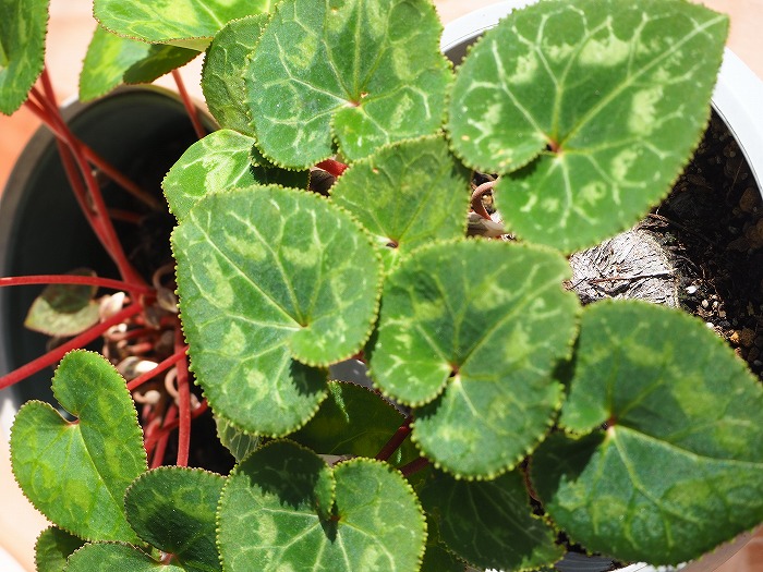 温暖化ですねぇ・・・。 北側の戸外で放置しておいた シクラメンが、今年も元気にしていたので、 室内に取り入れました。(2鉢) もう何年目になるかなあ~。