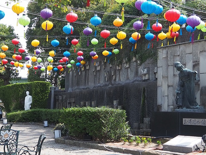 三浦環さんは、 戦前に『蝶々夫人』を2000回も演じたオペラ歌手 長崎伝統芸能館にも立ち寄る。 長崎くんちで使われる船や龍の展示。、