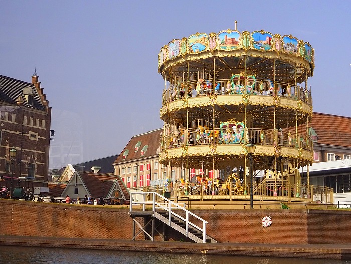 チューリップの庭園を見た オランダ宮殿の全貌も見える。 クルーザーから見たスカイカルーセル (3階建てのメリーゴーランド)