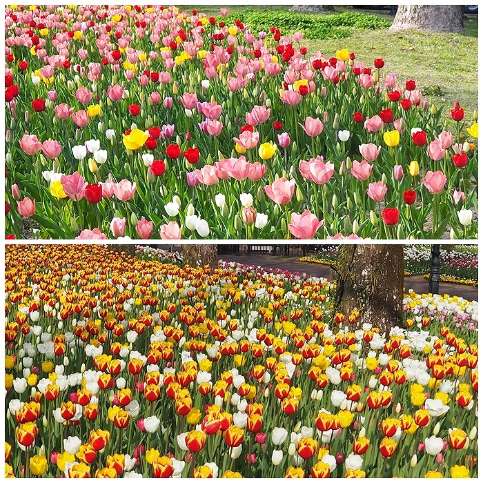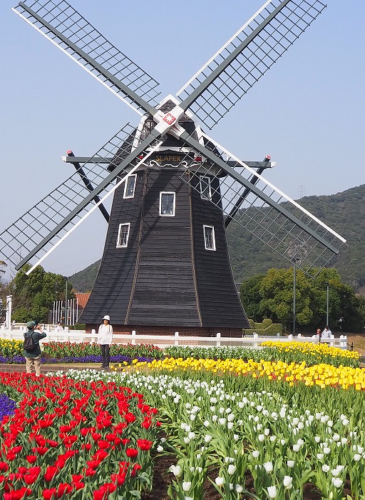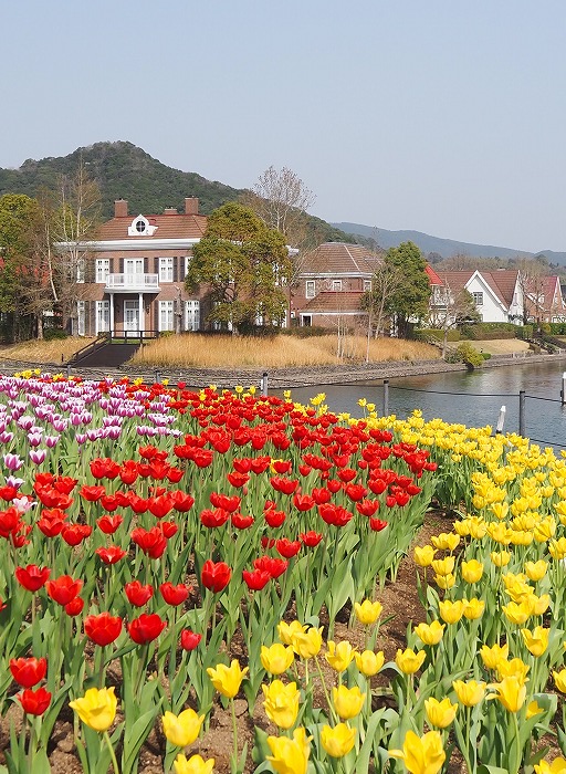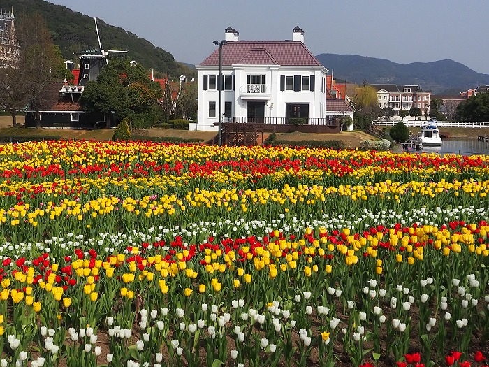チューリップ、オランダ風洋館、 風車、運河、クルーザー、青空、 どこを撮っても絵になる~♪ オランダ宮殿前のチューリップ