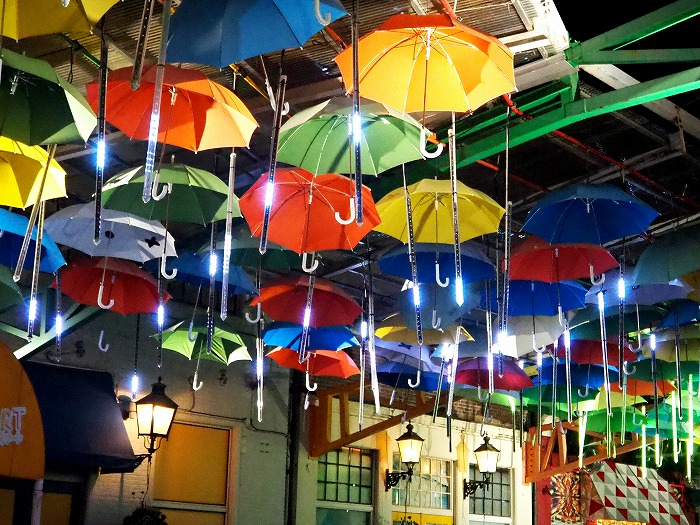 その後は、「帰るぞ!」と、 機嫌が悪くなるばかり。 クルーザーに乗って出口へ。 ホテルに引き上げ、早々に就寝。 妹夫婦は、始めからパーク内は 私達とは別行動で、 10時の閉園まで あれもこれも見てきたらしい。 夫婦の合計年齢11歳差が ここに出たか・・・。 しかたない。 写真に撮っていないので省いたけど、 昼間に、館内の展示なども 見て歩いてるし、 私も、実はクタクタ。 (追加) 夫がトイレに行ってる隙に見た アンブレラストリート