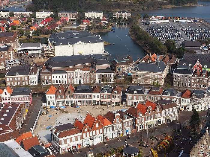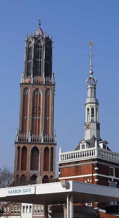 左はドムトールン 高さ105mのシンボルタワー。 右はスタッドハウス オランダのハウダ市役所を再現した建物