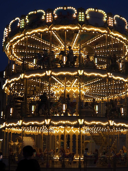 ところが、 昼間だけで夫が疲れ果ててしまい、 パーク内を歩き回るのを嫌がる。 スカイカルーセルに乗り(2階席)