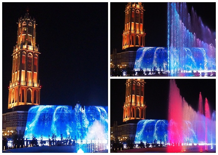 歩かず、座って休憩できるところしか行かない。 観覧車とドムトールンの間でやっていた 光と噴水のショーは見た。 (テラスに腰掛けて)