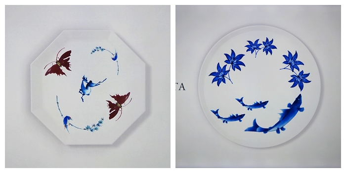 (ガラスが反射してきれいに写らなかった) 好きな器に、好きな図案を好きなだけ乗せて マイ アリタ が作れる 遊びコーナーもあった。 私の作ったマイ アリタは、この2点。