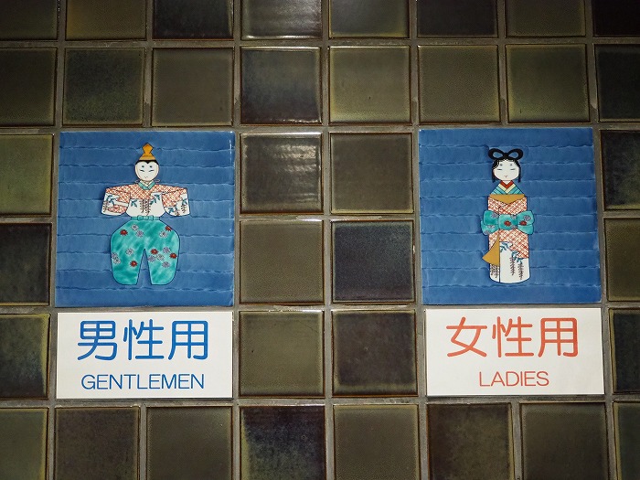 トイレの表示板も有田焼。