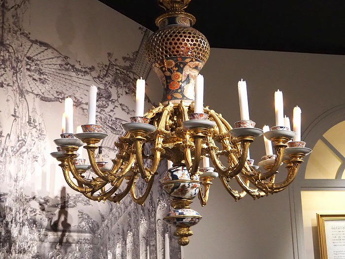 このシャンデリアも、 日本から輸入した有田焼きの 丼ぶりや湯呑みや壺を組み合わせて 作ってあるそう。