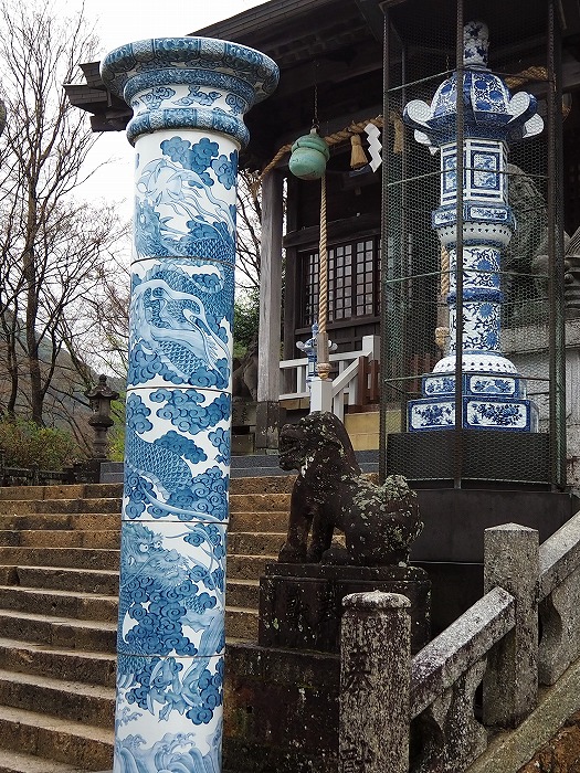 この鳥居を始め、狛犬、灯籠、水瓶などが、 磁器製なのが特徴。