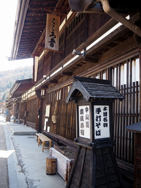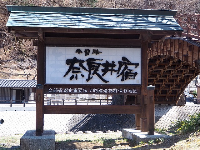 実はここに来るのは3度目。 でも一度目は終わりかけで、 二度目は早過ぎで、 三度目の正直になりました。 (ルンルン 次の目標地は、奈良井宿 中山道木曽路十一宿の中で、北から二番目の宿場町。 奈良井千軒といわれ、多くの旅人で栄えた、 約1Km続く最長の宿場町です。 国の重要伝統的建造物群保存地区に 指定されています。