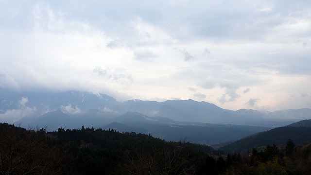 また、奈良井、妻籠と比べると、お店が多いです。 昔の家を利用したお店が。 町並みを見て歩くだけでなく、 食べたり、買ったりを楽しみたい人には いいかも。 妻籠にいる頃からあいにく雨がち。 でも、幸い、雨のときは建物内にいるとき。 馬籠でも、店内で白玉ぜんざいを食べてるときと、 島崎藤村記念館を見学しているときだけ 雨でした。 馬籠宿の北端、坂道の一番上から、 雨上がりに見た山々です。