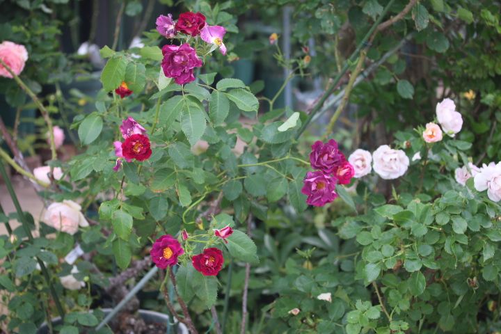 おはようございます~♪ バラは咲くのより散る方が多くて バケツに何はいも花がらがいっぱいになります。 一生懸命世話をしてやっと咲いたと思ったら 2週間くらいでゴミになっちゃうって、むなしいなあ~って思いながら それでもバラがたくさん咲く5月はうれしい毎日です。 昨日は午後から雨になるというのでかなり花を切りました。 もう終わりに近いプリンセスシビルドルクセンブルグ 次から次に花が咲くスキャボロフェア ピルグリムもだいぶ咲きました。 雨が上がったらピエールドロンサールもカットするつもりです。 来年はこの景色見られるかなあ。 花数は多いけど、容赦なく花が散るローズマリー クリーミーエデンは花もち抜群のバラです。 黄緑を帯びたコロンとした花が房で咲きます。 お姫様のドレスのようなみさき お隣に咲くクロードモネさんと2ショット 花はきれいなのですけど、横張になる樹形を整えるのが難しくて いつも花がうつむいて咲いてしまいます。 レオナルドダヴィンチは満開です。 去年慈雨にしたときは枯れるのかと思うほど花が少なかったけど 今年はいい感じです。 紫を帯びたピンクの花がたくさん咲きます。 バラ園で大きく育って花いっぱいなのを見て 感動してお迎えしたバラです。 いつかアのバラ園のようにたくさんの花が咲くかしら? 今日のきれいなバラたち シェエラザード ピルグリム きずな シューラネージュ ジュリエット カーディナルリシュリュー 黛玉 エリアーヌジレ ウォラトンオールドホール ジュビリーセレブレーション インスタグラムやってます。 インスタグラム こちら↑から見られます。 にほんブログ村