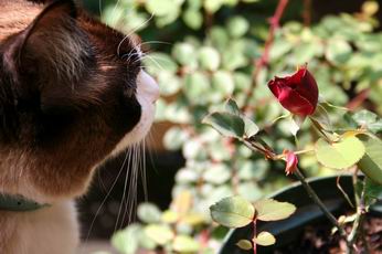 ![]() 三月から今か今かと気をもませていた、Francis Dubreuilの蕾。 やっと、咲きました♪ 四月十一日。 去年より三週間以上早い、薔薇の季節の始まりになります。 シーズン、プレイボールの一花目は、シックな赤い薔薇になりました。 強く気高い香りに、なぜ薔薇を育てているのか、その動機を今年も再確認。(笑) またまた、薔薇バカな季節が始まります 今年の春のエントランスフラワー。 チューは、大和園芸の通販で買った、初桜?とかそんな名前。 綺麗ですが、ビオラの色とのバランスがなんか想定外で。。 寄せ植えは、難しいにゃり、です。 レオニダス、昨日は昼過ぎに外に脱走したまま、夜中まで一度も帰ってこず、 娘にくわえて、ネコの帰宅の遅いのまで心配しなきゃいけないのかよっ。。!!と 花冷えの夜、近所をさがしまわりました。 諦めて家に戻ったところで、どしたの?という顔をしてふらっと帰宅。。 ネコ仲間の新歓コンパだったなんて言い訳はしませんでしたが、 ネコまで巣立ちの季節じゃ、かなわない母でございます。(^^;) お気に入りの記事を「いいね!」で応援しよう