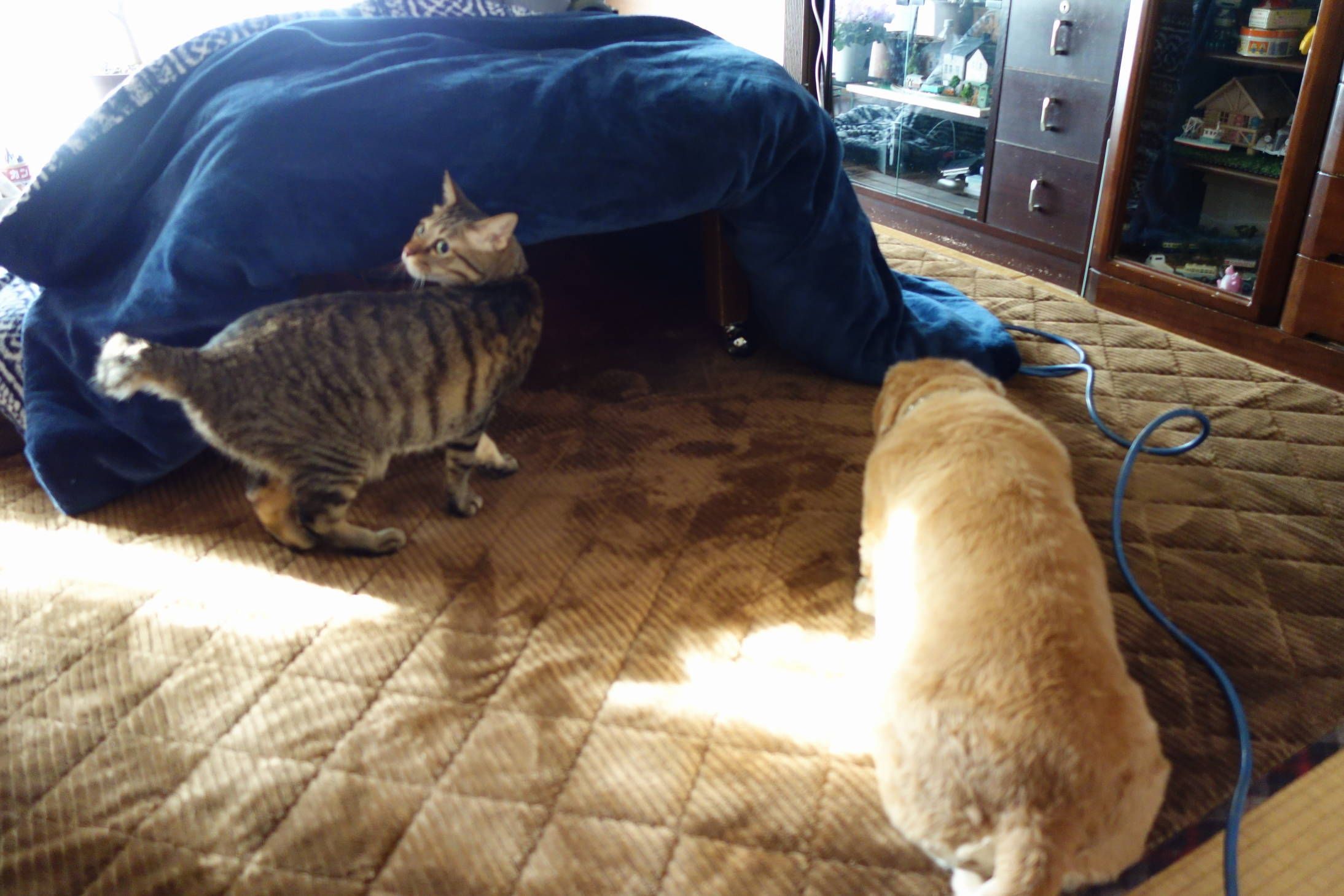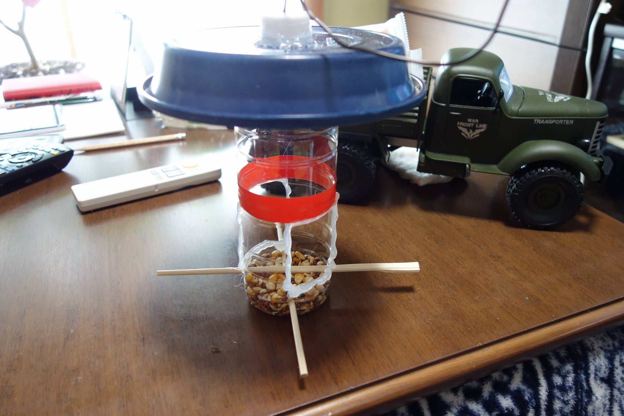 朝の6時半頃に家の外で掃除をしていたら曇り空から雪が降ってきました。 10分もしないうちに止んでしまいましたが、やっと初雪を見ることが出来ました。 初雪は見たものの、週間天気予報を見ると積雪を見ることなく冬が終わってしまいそうです。 雪雲は、南の方に流れて行ってしまいました。 天気は良くなりましたが、風が冷たいです。 午後になって小雨が降りだしてきました。 ![]() ーーーーーーーーーーーーーーーーーーーーーーーーーーーーーーーーー 昨日、ペットボトルで作ったバードフィーダーを手直ししました。 手直しの参考にしたのは、牛乳パックを使ったバードフィーダーです。 下に示したHPに牛乳パックを使ったバードフィーダーの作り方が書いてあります。 これなら、だれでも簡単に作ることができますよ。 バードウォッチング初心者入門ガイド(エサ台を製作してみよう。) http://www.birds.dicis.net/moreenjoybirdwatching/makebirdfeeders.html (今回の手直し箇所) ・ペットボトル底のエサが食べられるよう開口部を広くしました。 ・開口部で鳥が怪我しないようにグルーガンで接着剤を盛りました。 ・ペットボトルの底には、キリで水抜き穴をいくつか開けました。 ・上部に植木鉢用のお皿で雨除けを追加しました。 ![]() 野鳥は警戒心が強いので、なかなか寄り付かないと思います。 ![]() ーーーーーーーーーーーーーーーーーーーーーーーーーーーーーーーーーーーー ガス発電機の月一の試運転を行いました。 発電機は、一酸化炭素を排出するので屋外に置き、長い電源コードを室内に引き入れてコタツを使います。 ![]() コタツの電源は、発電機が発電を開始してからONにします。 コタツの暖房強さを1/3ほどで使用しましたが、これでも十分暖かいです。 ![]() ガス発電機は、使用温度範囲が5~40度で、この範囲外の時は発電することが出来ません。 今日は寒いですが、この温度範囲内に入っているので始動させることが出来ました。 以 上 お気に入りの記事を「いいね!」で応援しよう