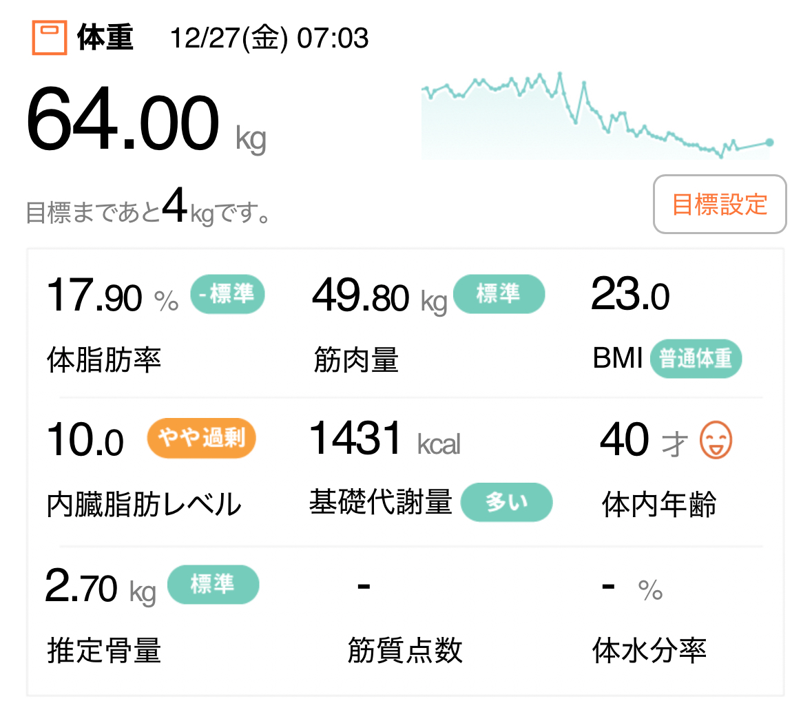 ご訪問ありがとうございます目標体重の56kgを目指してダイエット挑戦中なかなか順調にいきませんが見守ってくださいダイエット5日目朝 食 : なし昼 食 : なし夕 食 : お弁当その他 : 特茶500ml・コーヒー300ml飲水量 : 2,000 ml歩数:8,357歩昨日は久々にお水2L飲むことができたほんと意識してないと1Lも飲めてないときがあるこのままの感じでいければ2月は大丈夫そうなんだけどな継続できるかが問題今日は久々にメイクしてお出かけ友達とランチに行ってくる気分転換になるといいなコーデは前回と同じ黒のタートルにミニスカート、ブーツといった感じでもやっぱり顎がなぁ、、、脱毛も行きたいけどなかなか行けてない家庭用の脱毛器だとあんまり効果ないかもなとりあえず併用していくしかないかな夏までには綺麗になるといいな夏は化粧も崩れやすいし隠してもでてきちゃうからとりあえず久々のメイク頑張ろう↓ぼちっと応援してくれると嬉しいですにほんブログ村にほんブログ村ダイエット日記ランキング