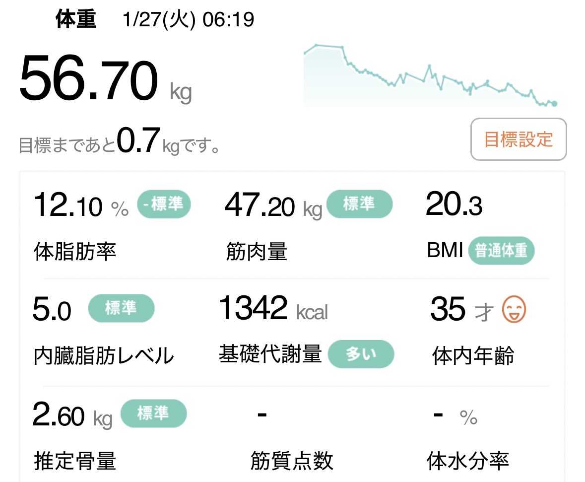 ダイエット227日目食後のお菓子が止まらない、、、太る原因なんですけどやめられない☆前日の食事・運動 朝 食 : ヨーグルト・無調整豆乳 昼 食 : サンドイッチ・スープ 夕 食 : パスタ、サラダ、スープ 間 食 : お菓子、、、 飲水量 : 2,000 ml 歩数: 24,199 歩運動はいつもどおりあと1km頑張れなかった気を引き締めていかないとですあと少しで56kgを達成できそうなとこまではいけたそこから少し気の緩みが出てしまい食べ過ぎている日が続いてしまったラストスパートのつもりで頑張らないと今月は増えて終わりそうな予感、、、いろいろ食べてしまってるからまずは一瞬でもいいから56kg以下にする理想は起床後すぐの体重が56kg以下今は朝活後に体重測定を行っているので理想から見るとまだまだなのです56kgは無理と思っていた時期もあったけどもやっと達成できそうなところまでこれたもっともっと減量できるはずである継続していくことができるかどうかなんだと56kgは目標体重ではあるけれどきっと達成しても体系的にはまだまだ満足できない引き締めが必要だし、52~54kgまでは落とさないとだなまずは今月56kg、来月55kgが目標かな頑張っていこう総合1位【LINE登録で最大1000円OFF】プロテイン ビーレジェンド ホエイプロテイン 女性 男性 WPC チョコ ベリー バナナ メロン 抹茶 鬼レモン パッションフルーツ ヨーグルト マンゴー 1kg WPC ゲリラ【ふるさと納税】プロテイン VALX ホエイプロテイン バルクス ホエイ 10000円 以内 1kg 2kg 3kg 420g 定期便 個包装 フレーバー 人気 国産 筋トレ トレーニング 美容 チョコレート ベリー ヨーグルト カフェオレ バナナ 抹茶 キャラメルマキアート ロイヤルミルクティー【ふるさと納税】【選べる容量】明治 ザバス ホエイ プロテイン 100 リッチショコラ 風味 計189g~計6.6kg(10.5g×18袋 280g×1~3個 980g×2~3袋 2,200g×1~3袋)10500円 ~ 130000円 1万500円 ~ 13万円 加工食品 体づくり ボディメイク 筋トレ タンパク質 アスリート↓ぼちっと応援してくれると嬉しいですにほんブログ村にほんブログ村ダイエット日記ランキング