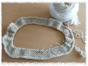 「大人の旬ニット」まっすぐ編むカーデ、前後身頃がくっつきました。