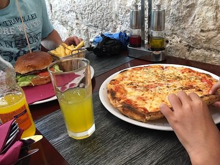 ガイドしてくれたのはイワンさん。 フランス語・スペイン語・英語OKなクロアチア出身の女性。 やんちゃな8か月のゴールデンレトリバーと3人の子のお母さんだわん。 待ち合わせ場所のピレ門からまずはロブリェナッツ要塞が見える港まで降りて来たわん。 う・・海が似合うわんになってるかわん?! ![]() これがロブリェナッツ要塞わんかーーー ドラマ・ゲームオブスローンズのお陰で大人気みたいだわん。 ![]() 街の目の前なのに美しい海わんね~ カヤック浮いてるわん。 ![]() わん、もう海に行ってもよろしいでしょうか・・・!? 『何しに来たの ![]() こ・・・これはもしかしてわんか!? 大オノフリオの噴水にわんの彫刻が 『意味は解らないけど噴水の守護犬らしいよ。君じゃないから ![]() ピレ門をくぐりました。 暑いです ![]() 噴水の脇に最古の薬局があるわん。 本当はもっと古い薬局があったらしいけど、もう営業してないから 事実上営業してる最古の薬局だということらしいわん。 ![]() 壁の前で写真とってるわんね。 これはこの壁を一段登ったところでシャツを脱ぐと願いが叶うと言われている場所わん。 わ・・・わん、シャツ脱げない・・・ ![]() 前を行く女性がガイドさんわん。 みんな知り合いみたいで話が長いわんよ~~ ![]() 黒猫わん! 魔女の宅急便の街だから『ジジ』わんか?! ![]() 大通りから外れると雰囲気が良いわんね。 ![]() 階段脇で工芸品を売ってるおばちゃんがいたわん。 伝統刺繍、上手だわん いくつかパターンがあるんだって図面を見せてもらったけど面白いってママさんが言ってたわんよ。 このおばちゃん、やっぱり猫の方が好きなんだって。 前に飼ってたネコは22歳まで生きたらしいわんよ! ![]() 反対側の旧港だわん。 グラスボートや観光船がでてるわん。 グラスボートならわんはOKだって! ![]() カッコいい観光船 乗る人も一杯いるわんね。 ロクルム島を一周したりサンセットクルーズしたりするみたいだわん。 ![]() 別の日に城壁も登ったわんよ。 この日は強風&雨の悪天候。 スルジ山行きのロープーウェイも運休だ~ ![]() 街はよく見渡せて美しさは変わりないけど・・・ ![]() 海は大荒れわん ![]() おねえちゃんも目を開けていられないわんか!? ![]() わ・・・わんの顔も潰れてるわん!! ![]() 夕方からもっと大荒れになるらしいわん・・・ ![]() ささっと食事を済ませて帰りましょうね。。。 宿は3食付きだけど都合に合わせて好きにしてOK。 キャンセルなどの連絡もいらないので助かります♪ ![]() アドリア海を挟んでイタリアだしかつてベネチアがこの国を治めていたこともあり イタリアごはんのお店がたくさんありました。 しかしベネチアには重い税金を課せられていた歴史があるのでクロアチア人はベネチアが大嫌いだと ガイドさんが言っていました。 ![]() でも魚介のパスタ、美味しかったですよ~! す・・・すみません、わんの分は・・・・!? できればお肉でお願いします。 ![]() 『ダメ お気に入りの記事を「いいね!」で応援しよう