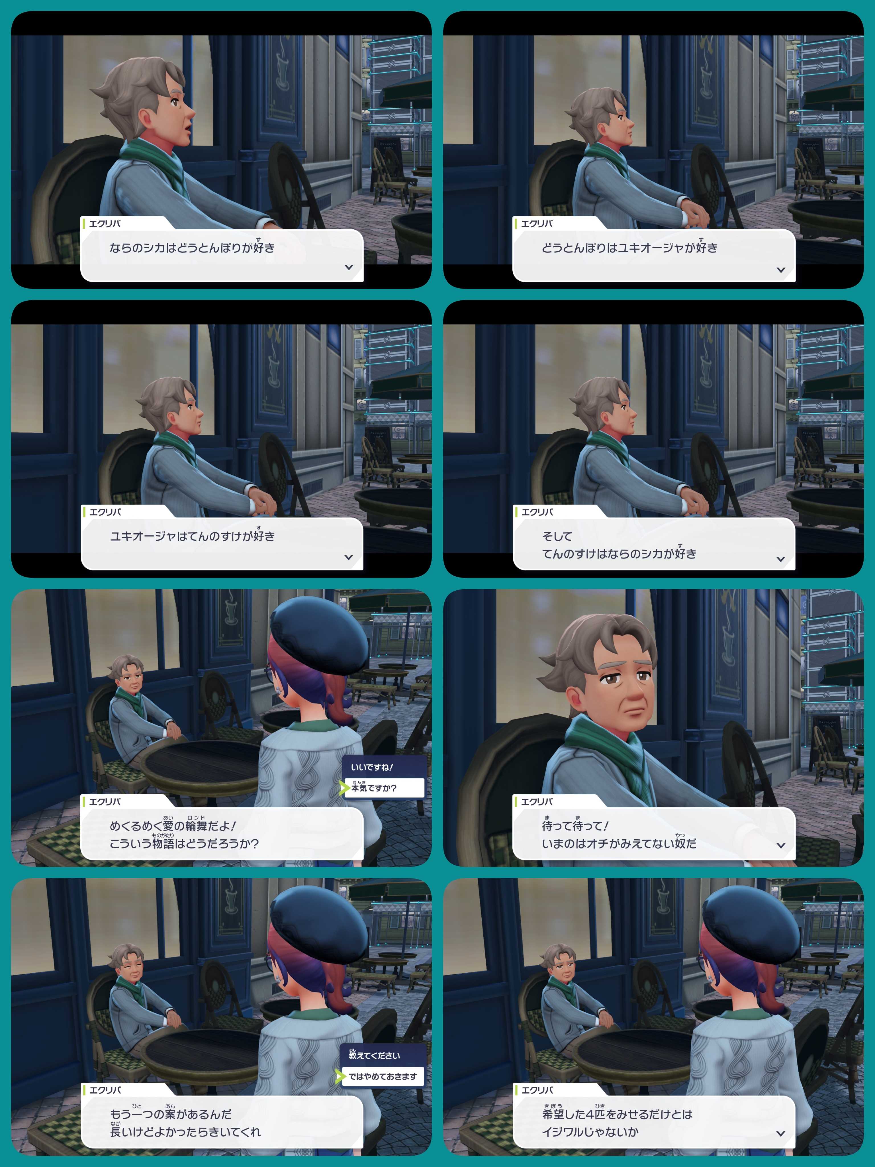 ![]() ![]() ![]() ![]() ![]() 前回の話、好評だったらしい。 あの内容で売れたんですね…… 今度は恋愛ものだが……冒頭の四角関係でよかったのでは? たぶん、どっちを選択しても「待って待って!」っていうと思う。 それにしても、ニックネームのせいで内容が台無しだね。 そらぁ、ニックネームが適用されるんだから、面白くしなきゃダメでしょ。 ニックネームのついてないポケモン見せたら、ポケモンの名前で普通の内容になったはずなのにな…… るみ子さんの目的は、いかにこの小説家を売れなくするかを目的としているからな!! 現に売れてるんですよこの小説家は! まぁ、次回の内容が楽しみになるぐらいは、この小説家の作る話は面白いわけなんだが…… 売れた理由は、ニックネームをそのまま使うんじゃなくて別の名前を使って、書き起こしたんじゃないかな? となると……今回のキャスティングではないという事か……ちょっと残念だな。 普通はそうだろ!構想を教えてくれてるだけなんだからさ! なら、この小説家の本買いたくなったな!公式さん!売ってください!! それにしても、ひどいニックネームですね…… ユキオージャはかっこいいニックネームだろ。 キングオージャーっぽいけど、あれは虫モチーフだぞ。 「ユキノオー」……雪の王だから「ユキオージャ」なんだろうけど…… キングオージャーに引っ張られすぎだろ。 ゼルネアスに「ならのシカ」は、ランクマッチでゼルネアスを使う人がたくさんいて、奈良のシカ公園状態になるからって理由ですね? そうだよ。それしか思いつかなかったわい。 チルタリスとスターミーはなんだ?「どうとんぼり」と「てんのすけ」? 関係性全くないよ。 変な内容になることは間違いないチョイスだけどな。 やだなぁ、褒めんなよ! 褒めてませんよ?★次回作をちょっと見たけど、この話をハチクとナツメがやってんのか…… まぁ、この2人が俳優女優業してるのは知ってたけどさ…… どんな内容になるかはまたネタバレ記事書きます!!! お話が置いてあるのはここ↓ ![]() 別館はここ↓ ![]() すべての記事一覧↓ るみ子さんのdiscordへの参加はこれ↓ ![]() よかったらクリックしてください(*´∀`*)ノ。+゜*。 ↓ ![]() ![]() ![]() ![]() 私のツイ垢で何かあったら↓この子でつぶやきます。フォローしてね!