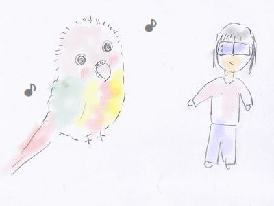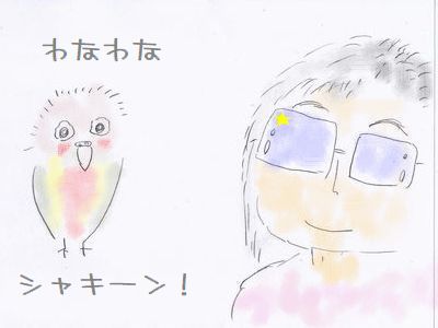 なんだか不快💦 ではあるが、きょうは雨のため自宅待機と決めた。 朝からナノイー発生器や排気口のフィルタ掃除等で 午前中が終わった。 洗濯ものもさすがに外に干せなかったので、 2Fのエアコンも稼働させて除湿。 なかなかの快適空間。 勝手口のドアを開けて外に出たら、ムシムシぃ~💦 ドアを隔てて、向こうは熱帯ゾーン? アイドル的インコ、クレちゃんのお散歩は雨のため中止。 雨の降る外にキャリーケージで連れ出したら、 鳥なりに納得した模様。 クレちゃんの怖いもの。 あまり怖がらないのだが、脚立が嫌い。 といっても2段くらいのそんなに大きくないものなのに、 なぜか大嫌い。 きのうまた1つ発見。 うちわが嫌い。 天使っちハクさまは、うちわ大好きだったのに…。 パタパタして涼しいものと思っていたのに、 同じ鳥でも大違い。 そして、もう1つは克服できたもの。 それはサングラス。 イラストに色塗りができたので、久々の青い島物語の番外編♪ この調子でいくと来年の青い島カレンダー、イラスト描きためないと 作れないかも!? ●青い島物語“番外編” 第133回 クレちゃんとサングラスの誇大妄想♪