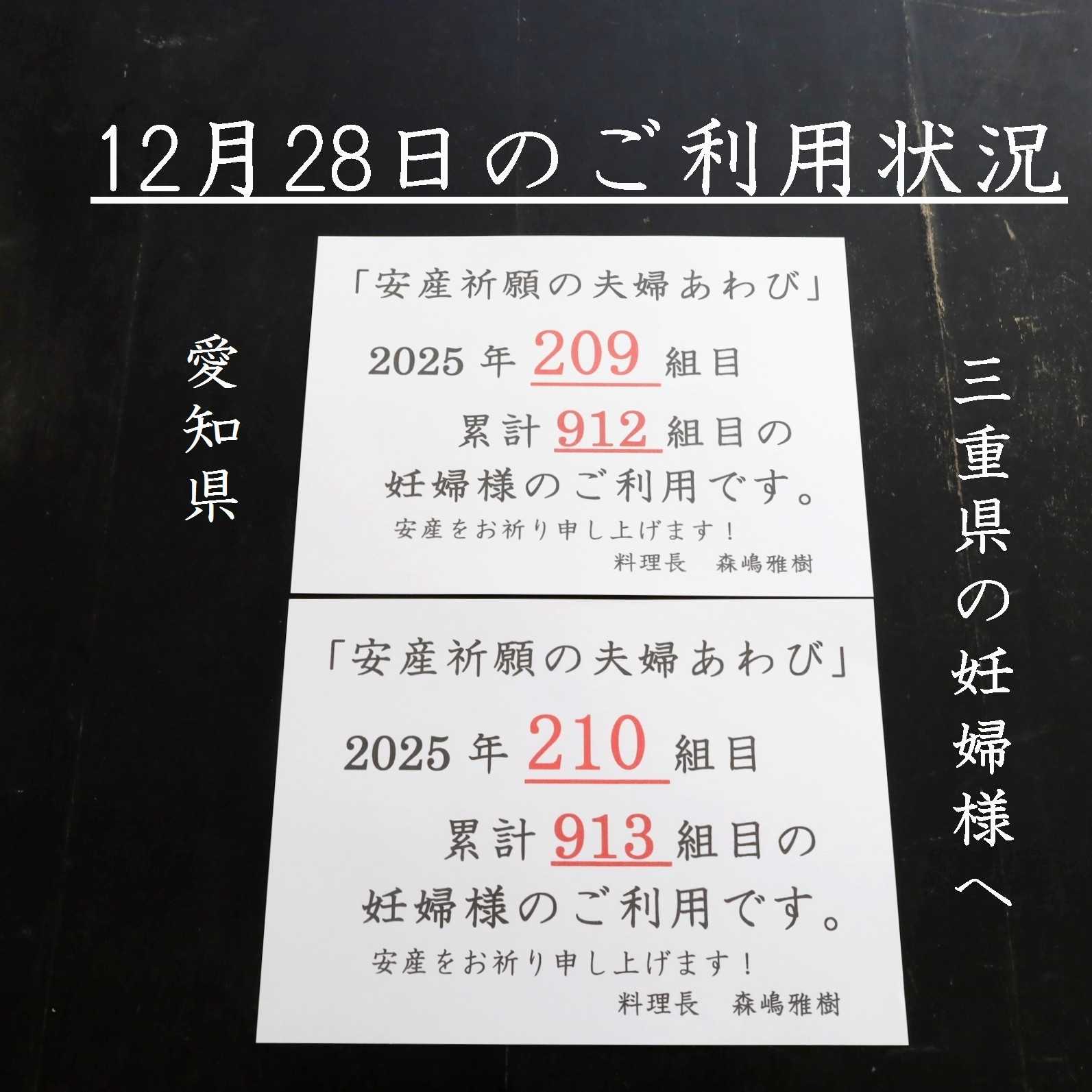 ![]() 三重県最北端 いなべ市 「阿下喜 あげき」の 日本料理 昭栄館 の料理長のブログ。 2006年9月13日から19年間毎日更新中です。 私 料理長 53歳。 もう33~28年前になりますが、 有名料亭 神戸吉兆で修行して参りました。 ![]() 当店のこと 毎日発信している情報 画像など、 昭栄館リットリンクからご覧下さいませ。 ![]() ![]() ↑ いなべ市ってこんなところ。 2022年4月より、 ![]() 楽天市場 日本料理 昭栄館 にて、いろいろ販売しております。 ![]() 全国各地にお送りしていますよ~。 楽天市場 日本料理 昭栄館 是非、一度ご覧下さいませ。 本日は、2025年 12月28日 日曜日。 「楽天市場 日本料理 昭栄館」に 1,541 1,542 1,543回目のご注文! お隣 愛知県の妊婦様へお送りの商品は、 ![]() ・安産祈願の夫婦あわびセット 愛知の皆様 いらっしゃいませ~。 続いて、 地元 三重県の妊婦様へお送りの商品も、 ![]() ・安産祈願の夫婦あわびセット 三重の皆様 いらっしゃいませ~。 コチラ三重県では、古くから 妊娠中に 夫婦あわび と食べると、 「目の綺麗な子が生まれる」 「眼病にかからない」 「安産で産まれる」と言い伝えられています。 もちろん、我が家も「安産祈願の夫婦あわび」を妻 ![]() 3,500~4,016グラムと、大きな赤ちゃん 3人共みんな 超安産でした。 風邪もひかない、元気で丈夫 あれから16~21年程経ちますが、 今でも 「あわび食べてもらって良かったな~」 と思っております。 ![]() あわびと妻 ![]() ![]() ![]() ![]() 当店は、安産祈願の夫婦あわび料理で大人気のお店です。 ・店内での「安産祈願の夫婦あわび料理」 ・テイクアウトで「楽天市場の安産祈願の夫婦あわびセット」 共に、たくさんのご利用がございますよ。 ![]() ![]() 身重な妊婦さんへの気遣いはもちろん、 お腹の赤ちゃんの健やかな誕生を願って・・・ 安産祈願に、心を込めたあわび料理を・・・ 妊婦さんへの一番のプレゼント 大人気です! 2025年 ![]() 209 210組目の妊婦様のご利用。 累計912 913組目の 妊婦様のご利用になります。 娘の腹帯祝いに、食べたくて、夫婦鮑を探していました。 見つけた時は嬉しかったです。 柔らかくて美味しかったです。 カットもしてあるので、温めるだけで、簡単に盛り付けもできて、 とてもよかったです。 いろいろなお祝いな貼り紙もあり、いいお祝いになりました。 娘のはじめての妊娠がわかり、 私にとってもはじめてのことでいろいろしてあげたいんですが、 ネットでこのお品をみつけてさっそく娘に送りました。 おめめのきれいな赤ちゃんが生まれてくるのが楽しみです。 アワビの調理ができるのか心配だったので もう切ってあるこの商品を選びました。おいしそうです。 商品レビューは コチラ! 「写真撮るの忘れて食べちゃった。 「産まれてきた赤ちゃんに、安産祈願のあわび料理を見せてあげたかった。 ご安心ください!! いつか、大きく成長されたお子様に、 この安産祈願の夫婦あわび料理を食べて、あなたが産まれたのよ とお伝え出来ますように、毎回のあわび料理をアップしております。 是非、いつか私のブログにアクセスしていただき、 ご家族揃って、お楽しみくださいませ!!! 当店の安産祈願の夫婦あわび料理を召し上がって、 ![]() ![]() 初節句のお祝い 赤ちゃんのお食い初めで再度ご来店いただくお客様も たくさんございます! 楽天アワビランキング 1位を獲得したこと 76回あります! 2023年は、6回。 8月6日分 9月20日 10月5日分 10月9日分 11月15日分 11月18日分 2024年は、32回! 1月14日分 1月15日分 1月16日分(3日連続! 1月28日分 1月29日分 1月31日分 2月1日分 2月13日分 2月16日分 3月4日分 3月17日分 3月19日分 5月21日分 6月8日分 6月9日分 6月18日分 6月29日分 7月2日分 7月21日分 8月1日分 8月17日分 8月26日分 8月27日分 8月31日分 9月12日分 9月29日分 9月30日分 10月4日分 10月6日分 10月10日分 10月17日分 10月29日分 2025年は、38回! 1月7日分 1月8日分 1月12日分 1月23日分 1月24日分 1月25日分 3日連続!!! 1月28日分 1月30日分 3月2日分 3月4日分 3月5日分 2日連続!!! 3月25日分 3月26日分 2日連続!!! 3月30日分 4月3日分 4月8日分 4月20日分 5月3日分 5月4日分 2日連続!!! 6月8日分 6月27日分 7月11日分 7月12日分 2日連続!!! 7月31日分 8月6日分 8月16日分 8月24日分 8月25日分 2日連続!!! 9月3日分 9月6日分 9月7日分 2日連続!!! 9月9日分 9月23日分 10月10日分 10月13日分 10月19日分 11月13日分 ![]() ↑ 2025年 12月14日 デイリーランキング部門にて 2025~2026年の「戌の日カレンダー」です。 ![]() 今年最後の「戌の日」は、大晦日 12月31日 水曜日!!! 年内発送 まだ間に合いますよ!!! 全国の妊婦様 ご家族様 是非ご注文ください! こちらの不手際により 「真空袋が閉じられてなくて、汁が漏れていた! 「あわびの殻で袋が破れていた! 様々なご意見を頂戴しまして、 梱包の仕方など、日々改善 どうぞ 安心してお求めくださいませ!!! 昨年末から「冷凍」もお選びいただけるようになりました。 冷蔵(1週間) 冷凍(2週間)と 消費期限が長くなりますので、 お日柄(戌の日)の都合 お仕事の都合に合わて ご注文