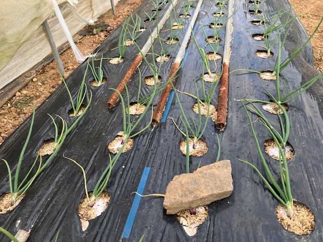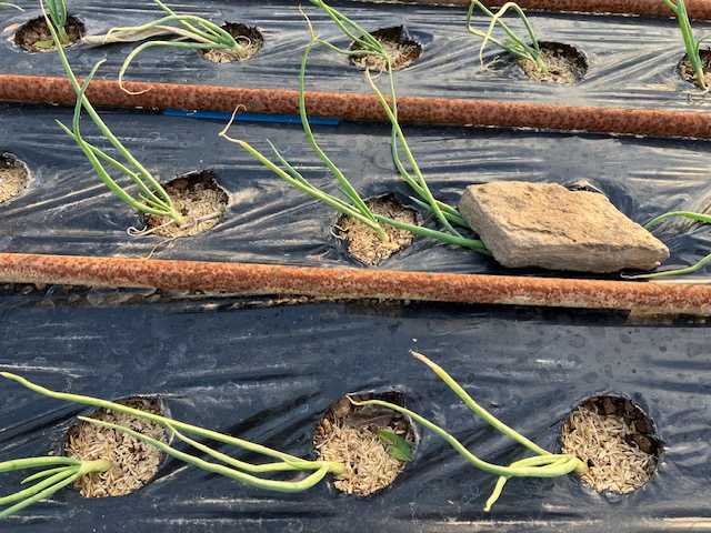 玉ねぎの踏み付け(石押さえ)2回目!下仁田ネギの収穫!