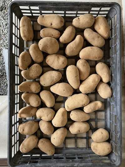 ◇種芋の準備をしました。品種は、メークイーンです。大きいものは、2分割しました。全体的に少し大きめになっています。5キロ購入しましたが、3キロでよかったかなと思います。