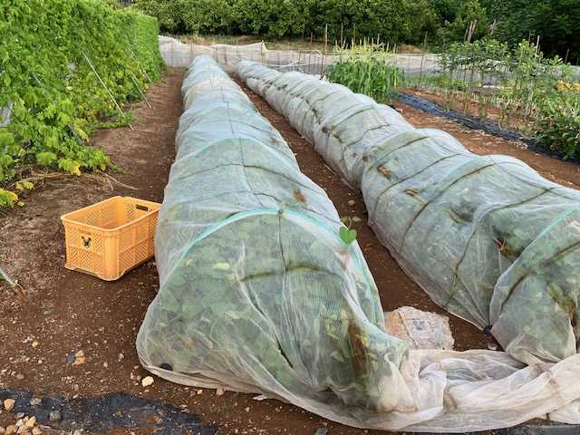 小さな山にある畑で野菜を育てています。昨年はイノシシの被害があったため、周囲をネットで覆いました。それ以来被害は出ていませんが、近くで被害の話を聞くと少し心配になります。カラスの被害は、防鳥ネットや細いテグスを使って、なんとか防いでいます。現在の畑の様子です。 ◇ランキングに参加しています。クリックが、ブログ更新の励みになります。。 ◇周囲を防風ネットで覆っています。 ![]() ◇別の角度から見たところです。 ![]() ◇サツマイモは、さらにトンネルネットで覆っています。 ![]() ◇昨日久しぶりに恵みの雨が降ったので、ネギ類も生き返ったと思います。 ![]() ◇菜園全体です。奥の方のスイカには、テグスを張っています。 ![]() ◇昨日収穫したゴーヤとオクラです。 ![]() 7/1 19時〜22時限定エントリーでP5倍!家庭用小型ハウス 温室 300×200×200cm シンセイ 菜園 ビニール ビニールハウス 種が、近くのホームセンターにないときは、5袋まで送料80円なので、錦幸園で購入するがお得です。 ![]() お気に入りの記事を「いいね!」で応援しよう
