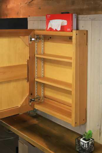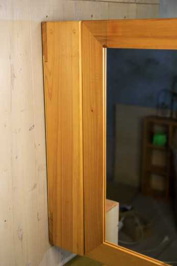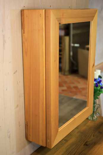 ![]() 本日ご紹介するのは、OLD ASHIBA(杉足場板古材)のミラーキャビネットです。 現在、既に、「OLD ASHIBA ミラーキャビネット」として、LサイズとMサイズの2種類を発売中で、ご好評をいただいていますが、本日ご提案するのは、「Bタイプ Mサイズ」。 なにがどう違うかといいますと、まずは、サイズです。 違いを分かりやすくするため、発売済の商品を「Aタイプ」、新しく追加するタイプを「Bタイプ」とします。 サイズの違いを比較してみると、こんな感じ。 ![]() 今回発売したのが、中央です。 これだけ見ると、左端から、LMS という感じですが、既に右端のMサイズを発売済ですので、今回追加したサイズは「Bタイプ Mサイズ」とします。 ちょっと分かりにくくてすみません。 ただ、これまで、LサイズとMサイズのサイズの差が大きかったので、ちょうどいいサイズがなかった、という方の多かったと思いますので、選びやすくなります。 Bタイプとしたのには、サイズ以外の特徴の違いもあります。 一つは、扉の開閉に使う蝶番が外側についていないこと。 ![]() 発売済の商品は、古材との相性や、高級感の観点から、真鍮の味のある蝶番を使っています。 ![]() そのため、壁面に埋め込みたい場合は、蝶番よりも後ろだけになってしまうのですが、Bタイプの場合は、蝶番が外側についていないので、ボックス部分を完全に埋め込むこともできます。 それと、「Aタイプ」との違いとして、ボックス部分の素材があります。 「Aタイプ」はボックス部分もOLD ASHIBA(杉足場板古材)ですが、Bタイプは、◇国産杉の新材を使用しています。 ボックス部分なので、素材の違いはあまり気にならないと思います。 ![]() さて、蝶番はどこについているかというと、内側です。 いわゆる「スライドヒンジ」と言われるもので、扉位置の微調整もできて、家具類にはよく使われるヒンジですね。 このヒンジは、ボックス部分が厚いと使いにくいので、35mmの古材を使った「Aタイプ」には適しません。 ![]() 扉となるミラーの開閉は、ボックス上下のくぼみを使って、ミラーの下側に指をかけて行います。 上下をひっくり返して使えますので、開き勝手は左右兼用です。 ![]() 上にも窪みがありますので、そこを利用して、ティッシュを置いたりもできます。 ![]() スライドヒンジには、ダンパー付きタイプを使っていますので、閉まり方もソフト。 GIF動画にしてみましたので、御覧ください。 ![]() ということで、本格発売は来年になってしまいますが、今からご検討の方は、選択肢に加えていただければ幸いです。 お気に入りの記事を「いいね!」で応援しよう
