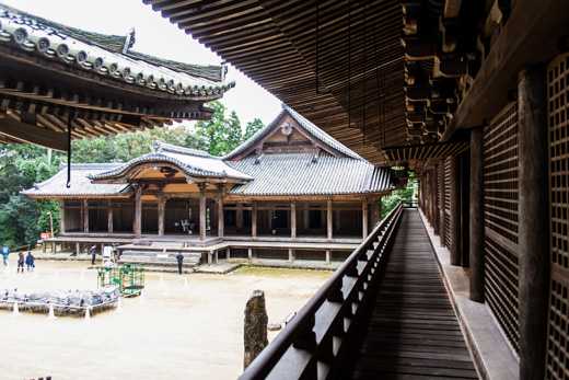 ![]() 本日は、有馬温泉からの帰り道に立ち寄った、「書写山圓教寺」について書きます。 冒頭の写真は、圓教寺「摩尼殿」。 圓教寺は西の比叡山ともいわれ、古くから高い格式の寺院であったようで、確かに、敷地も広いし、建物も荘厳で巨大です。 姫路城には何度か行きましたが、恥ずかしながら私はこの有名なお寺のことをまったく知らず、いつもスルーしていました。 「書写山圓教寺」は文字通り「書写山」という山全体が寺院といった感じで、かなりの広さです。 ![]() 麓から、ロープウェイで上がります。 ![]() ロープウェイを降りて、そこから本殿である「摩尼殿」までは歩いて20分とか。 結構な山道を上がっていくので、なんと、摩尼殿ゆきのバスが出てます。 雨も降りそうだし、足を捻挫して痛めていることもあって、今回はバスを利用し、摩尼殿へ。 ![]() 弦を這わせるためか、ロープが何本も張ってあって分かりにくいのですが、清水寺のように、木組みの舞台の上に立っています。 ![]() 回廊も広く、立派です。 ![]() 内部からの様子。 1933年に再建されたものなので、それほど古いものはありませんが、既にかなりいい味わいが出ています。 ![]() 少し前にブログでも紹介した「はしもとみお 木彫展」のポスターが貼ってありました。 どうやら、廿日市市の次は、姫路にやってくるようです。 ⇒「はしもとみお 木彫展」on WOODPRO ![]() 摩尼殿の裏手を通って、「三之堂」に向かいます。 途中、「千年杉」と言われる巨大な杉の木があり、必見ですね。 ![]() 「三之堂」は、巨大な三つのお堂がコの字型に配置されたところです。 イベントがあったらしく、撤去中。 正面が「食堂」。 左側が「常行堂」といい、道場。 右側が、「大講堂」で、講義が行われた学問を学ぶところ。 いずれも、国指定重要文化財です。 この巨大な施設を見ると、圓教寺が、古くから、修行のために多くの僧侶が集まっていたことが分かりますね。 ![]() 食堂越しの、大講堂。 ![]() 地面に近い柱の根元は傷みやすいので、傷んだところを切り取って、補修してあります。