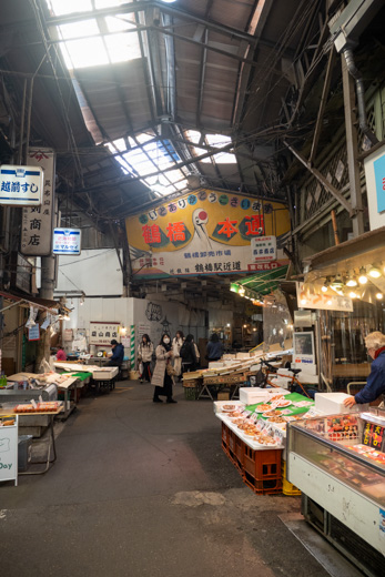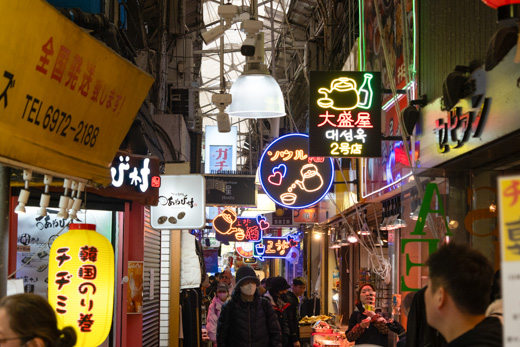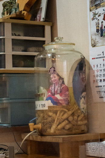 ![]() 2月8日9日の土日を使って、大阪に行ってきました。 まず向かったのが「鶴橋」です。 すでに25年も前になります。 以前勤めていた木質建材メーカーで、カタログの製作などを担当していたのですが、その際、大阪で大型のルームセット撮影を行うことになり、それに立ち会いました。 その際に業者さんと一緒に行ったのが鶴橋の焼肉屋さんだったのですが、駅を降りて焼き肉屋までの間に見た「鶴橋」インパクトが強く、ずっと気になり続けていました。 細い路地に並ぶ、キムチのお店や、チマチョゴリを飾った服飾店・・・。 「ここは一体どこ?」と、頭がバグるくらいのインパクトでした。 以来、再び行ってみたいと思っていたのですが、大阪に行く機会がなかなかなく、やっと今回実現した次第。 実際に行ってみると、想像を超えた異世界でした。 まず、思った以上に範囲が広く、まるで迷路です。 適当に歩いていると、もとの場所に戻ることも困難なくらいです。 ![]() 商店街の道は細く、すれ違う際にもよける必要があるほど。 ![]() そして、その細い路地の多くには屋根がついています。 アーケードというには、少々安っぽく、古い。 ![]() 倉庫の中のような、古い屋根は、いったいいつからあるのだろうか? 調べてみると、鶴橋商店街のルーツは、戦後の闇市だとか。 ![]() 鶴橋はJRと近鉄M地下鉄が交わる鶴橋は交通の要衝でもあり、比較的被害も少なかったことから商店が集まり、現在の商店街の原型ができたのだとか。 ![]() 鮮魚の市場もあり、 ![]() 豚足が固まりで店頭に置かれていたり、 ![]() もちろんキムチの店もたくさん。 ![]() 服飾店が並んでいる一角があったり、 ![]() チマチョゴリが飾ってあったりします。 ![]() こちら、鶴橋にあった顔出しパネル。 韓国に行かずに、鶴橋で済ませた、という内容ですが、 最近では、韓国にもこんなディープな商店街がなくなって、韓国人観光客も多いとか。 ![]() 闇市がもととはいえ、日本中に闇市はありました。どうして鶴橋がディープな韓国カラーの商店街になったのでしょうか? 1920年代、済州島と大阪の直行便ができて、韓国からの出稼ぎ労働者がたくさん大阪にやってきました。 特に鶴橋周辺のエリアには韓国からの出稼ぎ労働者が多く住んでいたのですが、終戦時に祖国に帰らずにそのまま住み着き、さらに、1948年の済州島事件という、李承晩による島民虐殺事件が発生し、多くの済州島民が縁故を伝って鶴橋周辺にやってきました。 結果、韓国出身者の密度が極めて高くなり、闇市をベースに韓国人の商店街が形成されていったようです。 ![]() そのため、肉の陳列も日本とは一味違います。 ![]() 戦後間もなくの状態が、ほとんどそのまま残っているのではないか、と思われる雰囲気。 しかも、日本にいるとは思えないほどの強い、作り物でない韓国感。 「時空を超えた」という表現がぴったりする異空間が、普通に大阪のど真ん中にあるという驚き。 ![]() ということで、商店街の中にあった「アリラン食堂」というところで昼食を食べることに。 ![]() 定食には、こんなおかずが8品ついてきます。 好き嫌いの多い私としては、まあまあ苦手なものもありましたが、韓国の定番料理なのでしょうね。 ![]() 注文したのは、8日のおかず付きの「サムギョプサル定食」 ![]() 海鮮チジミ ![]() 大きなビンに入った朝鮮人参。 ![]() 火事が起こったら大変だろうなあ、とも思いましたが、防災上の観点とか、老朽化とかを考えると、この商店街も再開発されてしまう可能性も高いように思います。 ぜひ、この商店街のあるうちに一度散策することをお勧めします。 商店街一角で見つけた、シャッターに書かれた印象的な絵。 これは何なのでしょうね。 ![]() 鶴橋商店街 絶対おすすめ。 お気に入りの記事を「いいね!」で応援しよう