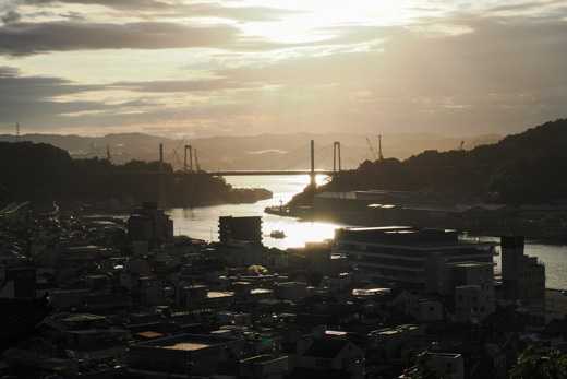 ![]() 最近、尾道は異常に観光客が増え、日中は大混雑の大渋滞になるのですが、早朝はさすがに人もおらず、のびのび散歩できます。 ということで、冒頭の写真は、尾道の写真スポットの一つである、「天寧寺の三重塔と尾道大橋」です。 残念ながら雲の隙間から少しだけ日が差す日の出でした。 尾道市役所の駐車場に車を止めたのは、午前4時50分。 深夜に降った雨が樹脂製のデッキの上に水たまりを作っていました。 空は曇天らしく、星も見えず、気持ちいい日の出は期待できそうにない、ということで、まだ暗い尾道の街をうろうろすることにしました。 ![]() 海沿いを東に歩いて、浄土寺のそばの漁船のたまり場についたころ、空がぼんやりと青みが買ってきました。 ![]() 夜明け前の誰もいないレトロな路地裏を歩くのも結構楽しいです。 ![]() だんだんと朝の散歩の途中と思われるお年寄りの姿が増えてきます。 ![]() 千光寺のロープウエイ乗り場のすぐ横にある艮神社(うしとらじんじゃ) 尾道に最初にできた神社といわれ、 立派なクスノキがシンボル。 推定樹齢は900年。 ![]() 艮神社から天寧寺の三重塔に向かって千光寺山を登る路地が「猫の細道」。 ![]() いたるところに猫の絵や猫の人形などがあり、尾道の観光スポットの一つになっています。 ![]() ちょっと無理やり感のある石垣にも猫。 ![]() コンクリートの割れ目と、メーターの蓋を生かして描かれた猫。 ![]() もともとは、このあたりに、丸い石を使って描かれた猫石がいくつか置かれていて、それがかわいらしくて人気スポットになったのですが、いつしか、ちょっとやりすぎなくらいの「猫の細道」になっています。 ただ、ここで猫を見かけることはまれです。 ![]() 寺巡りもよし、カフェ巡りもよし、レトロな商店街をぶらぶらして、千光寺山に登って、美しい尾道水道を見下ろす。 一日ゆっくり楽しめる街なのですが、最近は人が多すぎて大変です。 救いとしては、日本人観光客が中心で、まだまだアジア系観光客が少ないこと。 外国人が押し寄せるのも時間の問題かも。 猫の細道を抜けると、天寧寺の三重塔が見えてきます。 そこから見た尾道大橋。 右側に見える建物が車を止めた尾道市役所ですね。 ![]() お気に入りの記事を「いいね!」で応援しよう