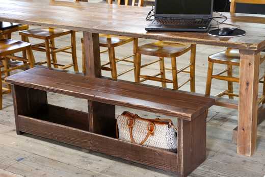 ![]() 本日ご紹介するのは、下が荷物置きとなったベンチです。 ベンチの下が、こんな感じで荷物置きになっていて便利です。 ![]() もともとのご依頼は、お子様が帰ってきて、ランドセルや道具を入れる場所として、収納付きのベンチをご依頼いただききました。 こんな感じで、荷物が入ります。 ![]() ベンチを収納として利用するケースというのは、開閉式の座面とか、着脱式の座面とか、引き出し式とか、いろいろありますが、このタイプはとってもシンプル。 落下防止の板があることで、化粧性もアップしますし、荷物がはみ出したり、肩掛けが垂れ下がったりしないのでいいですね。 お店のベンチなどにも使えそうです。 ![]() 商品データ******************************************* OLD ASHIBA 下部荷物置き付きベンチ サイズ W1500 D400 H420 仕上げ 屋内用濃茶 参考価格 48000円(税込み 52800円) ※無塗装の場合、10000円(税込み 11000円)価格が下がります。 ※別途配送費がかかります。 お気に入りの記事を「いいね!」で応援しよう
