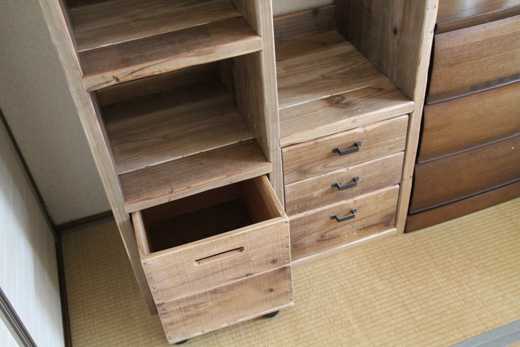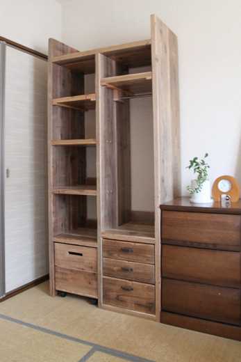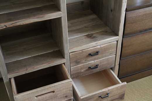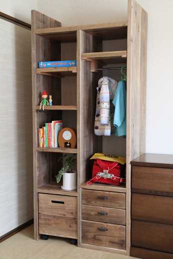 ![]() 本日ご紹介するのは、子供のグッズを整理するために作られたOLD ASHIBAのラックです。 一般的な子供用のラックというのは、大人になるとでデザイン的に気に入らなくなって、だんだんと家の隅に追いやられたり、廃棄されたりしてしまいます。 が、OLD ASHIBA(杉足場板古材)のこのラックは、子供たちが成長した後でも、自立した先にまで持っていきたくなるように、全世代にわたって機能面もデザイン面も考えたラックです。 実はこれ、14年前に納品したもの。 納品先は、WOODPROの経理担当のNさん。 当時はまだアパート住まいで、お子様たちも小学生でした。 何も入れてない状態がこちら。 背の高いラックですが、固定だな、可動棚、引き出し、キャスター付きボックス、ハンガー掛けがセットされた多機能ラックになっています。 ![]() 下の方は、引き出し式の深めのボックス。 ![]() おもちゃとか、ごちゃごちゃしたものを入れておくのに最適。 ![]() こんな感じ。 成長とともに、ここに入るものも変わってくるのでしょうね。 ![]() そして、引き出しは小物の整理に必要ですね。 ![]() ハンガーバー付きの可動棚。 子供の成長とともに、服の丈も変わってくるので、それにあわせて棚の位置を変えて対応するという優れものです。 ![]() 嬉しそうに人形を飾っていますが、このかわいらしい少女は、もう二十歳。 ![]() このラックの納品から14年。 総務担当のNさんはその後家を建てて引っ越しましたが、まずはこのラックの置き場所を決めて新居の設計をしたとのことで、現在はリビングの一角に鎮座し、三人の子供たちが競い合って使っているとのこと。 ![]() おそらく、あと5年もすると、子どもたちが自立していって、夫婦のものが入ってくるのでしょうね。 家族の成長を見守る、そんな古材のキャビネットのお話でした。 ブログに載せるという話を総務担当のNさんにしたら、新居に引っ越した時の写真をくれましたので、載せておきます。 ラックの横にあるのは、OLD ASHIBAのスライドテーブル付きのデスクですね。 メインの壁面にどーんと置いてもらって、光栄です。 ![]() お気に入りの記事を「いいね!」で応援しよう