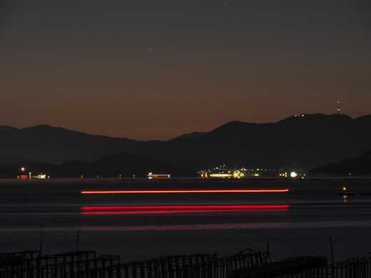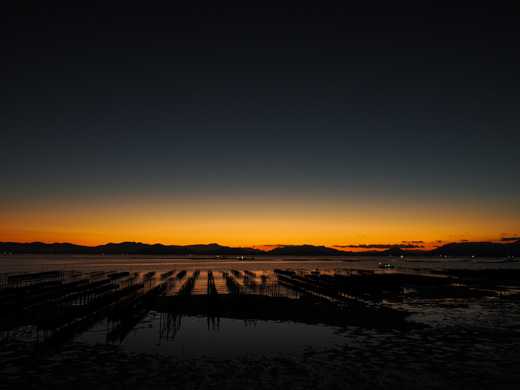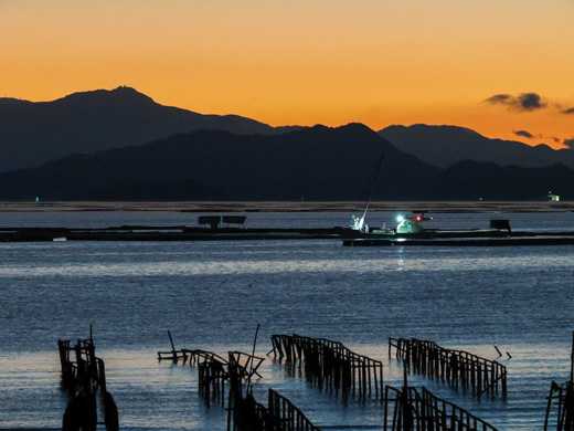 ![]() 12月6日(土)の朝、久しぶりに夜明け前の地御前に行ってみました。 地御前といっても、広島県西部の人しかしらないかもしれませんが、斜め対岸には宮島が見える広島牡蠣の産地です。 最初の写真は、地御前の海の朝の風景ですが、手前の船はクレーンがないので、牡蠣用の漁船ではないようです。 牡蠣の漁船は、後ろの漁船のようにクレーンがついていて、これで牡蠣棚から吊るした牡蠣を引っ張り上げます。 12月となると牡蠣も出荷のピークで、土曜日であっても牡蠣の漁船がひっきりなしに行き交い武器屋化なのが常でしたが、今年は、地御前の牡蠣業者も見える限りお休みで、静かでした。 例年は写真右側の牡蠣屋さんの照明や焚火が眩しいくらいの朝なのですが・・・・。 ![]() たまに通過する漁船を少し長めのシャッタースピードで撮ると、船の照明の光跡が残ります。 上が証明で、下のラインは海に映ったものですね。 ![]() 午前6時を過ぎてくると、だんだんと空と海との間がオレンジに変わってきます。 ここから、夜明け前30分くらいが一番美しい時間帯です。 空気もピンと張りつめて、寒いけど気持ちのいい時間帯。 ![]() 今年の瀬戸内牡蠣は死んでいる牡蠣が多く、収穫量も半分以下とか。 お歳暮用に毎年頼んでいる江波の牡蠣屋さんも、「対応不能」ということで断られました。 今年はともかく、来年以降もどうなるのか、心配ですね。 ![]() 日の出る前に移動して、近くのヨット置き場へ。 丁度日の出が地御前漁港入り口の灯台の上に登ってきたので、パチリ。 ![]() そこから家に帰る途中、山際に沈む月を発見。 今年最後の満月で、「コールドムーン」と言われているとか。 今年を締めくくる満月が沈んでいきます。 朝日に照らされて、初冬の山も赤みを帯びてきれいでした。 ![]() 今年も残りわずか。 怪我や病気に気を付けて、いい年末、お正月を迎えられるようご自愛ください。 お気に入りの記事を「いいね!」で応援しよう