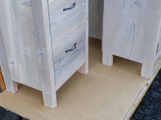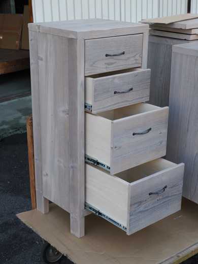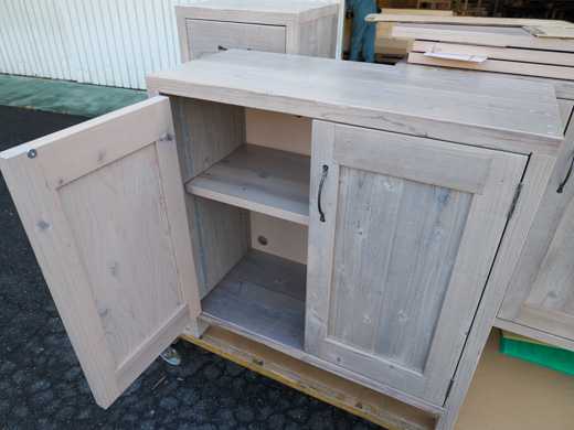 ![]() 本日ご紹介するのは、OLD ASHIBA(杉足場板古材)のキャビネットです。 ご紹介する商品の一番の特徴は、側面のパネルを前後の板だけ延ばして「脚つき」のデザインにしたことです。 ![]() それから、開き戸の蝶番は、表から付けるタイプではなくて、内側につける一般的なタイプになっています。 ![]() 扉を開いたところがこちら。 内部には可動棚が2枚入ります。(写真は1枚) ![]() 背面下部に、配線用の穴をあけてあります。 ![]() 開き戸のキャビネットが2台と、もう一つ、スリムな引き出しのキャビネットのご注文もいただきました。 ![]() こちらももちろん、「脚付き」デザインでそろえてあります。 ![]() この感じもすっきりしていいですね。 ![]() 商品データ************************ OLD ASHIBA(杉足場板古材) 開き戸ユニット 脚付きデザイン サイズ W800 H820 D350 仕上げ 屋内用灰白 ウレタン仕上げ 参考価格 52000円(税込み 57200円) OLD ASHIBA(杉足場板古材) 引き出しキャビネット 脚付きデザイン サイズ W400 H920 D350 仕上げ 屋内用灰白 ウレタン仕上げ 参考価格 60000円(税込み 66000円) ※別途配送費がかかります。 お気に入りの記事を「いいね!」で応援しよう