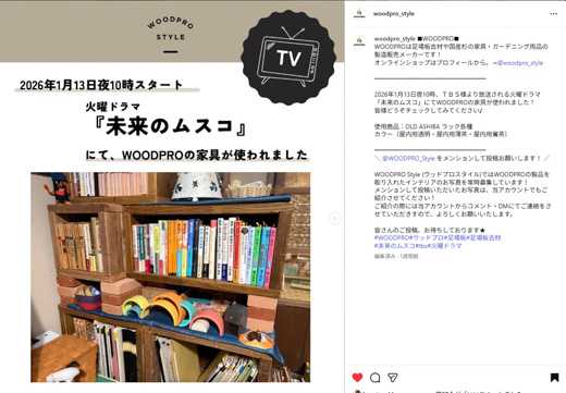 ![]() 本日は、WOODPROの公式インスタグラムのご紹介です。 ⇒instagram woodpro_style WOODPROの商品紹介を、お客様からいただいたお写真や、担当スタッフが実際に使っていただいた現地に赴いて取材した写真などを掲載して、HPでは伝えきれない情報を発信しています。 インスタグラムのフォロワー限定セールや先行販売なをも行っていて、メリットもいっぱい。 フォロー、よろしくお願いします。 そういえば、「未来のムスコ」というTBS火曜10時からのドラマにもOLD ASHIBAラックを使ってもらっていて、その紹介なんかもしています。 ⇒「未来のムスコ」にWOODPROの家具が使われました ![]() ということで、いろんな情報満載の、instagram 【WOODPRO STYLE】 。 フォローよろしくお願いします。