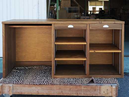 ![]() 本日ご紹介するのは、OLD ASHIBA(杉足場板古材)でっ作ったキッチンカウンターです。 引き出しの取っ手はお客様の強いご要望で、「支給品」を取り付けました。 左側のスペースは、ゴミ箱置き場で、奥まったところにちょっとした固定棚があり、これもお客様のご指定です。 ![]() 右側は上部に浅めの引き出しがついた可動棚が2列。 シンプルで使いやすそうな配置です。 ![]() 固定棚には、◇国産杉の新材を使用しています。 古材と比べると、少し明るめの色調になります。 ![]() 最近は対面キッチンの背後にカウンターを配置するレイアウトが一般的。 ゴミ箱や、食器、レンジなどをどう配置してどう使うかも人それぞれ。 市販のキッチン収納はどうしても、最大公約数的になりがちなので、どこか使いにくい。 思い切ってオーダーにするのもいいですね。 なにしろ、家の中でも最も使用頻度の高い場所。 機能にも、見た目にもこだわりたいところです。 ![]() 商品データ****************************************** OLD ASHIBA キッチンカウンター オーダー品 サイズ W1800 D500 H850 塗装 屋内用鶯茶 参考価格 170000円(税込み 187000円) ※別途配送費がかかります。 お気に入りの記事を「いいね!」で応援しよう