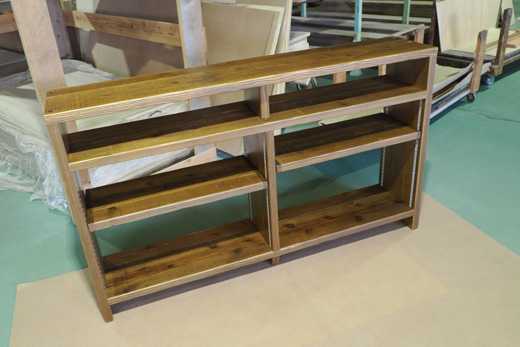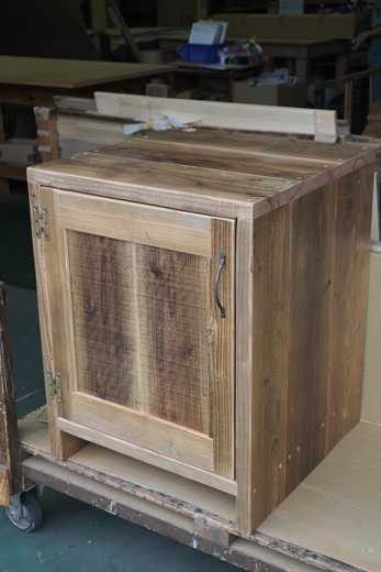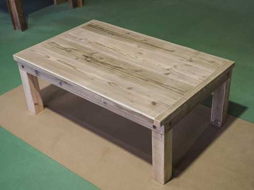 本日ご紹介するのは、OLD ASHIBA(杉足場板古材)のコタツ 兼 ローテーブルです。工場内で撮影したので、照明のせいで色合いがよくありませんが、ご容赦ください。こんな感じで、天板だけ外れます。コタツとして使う場合は、コタツ布団をかけて天板を載せるだけですが、冬以外はボルトで固定して使用できます。天板を取ると、こんな感じ。コタツのユニットが取り付けてあります。ちなみに、脚部もボルト固定です。コタツのような熱をもつ器具の場合は、天板などが通常よりも乾燥する場合もあるため、反りの心配があります。その点は説明してご了解をいただいたうえでの製作となります。商品データ***********************************************OLD ASHIBA(杉足場板古材) ローテーブル(コタツユニット付き)サイズ W1050 D650 H400仕上げ 無塗装参考価格 45000円(税込み 49500円)※コタツユニットは含みません。※別途配送費がかかります。