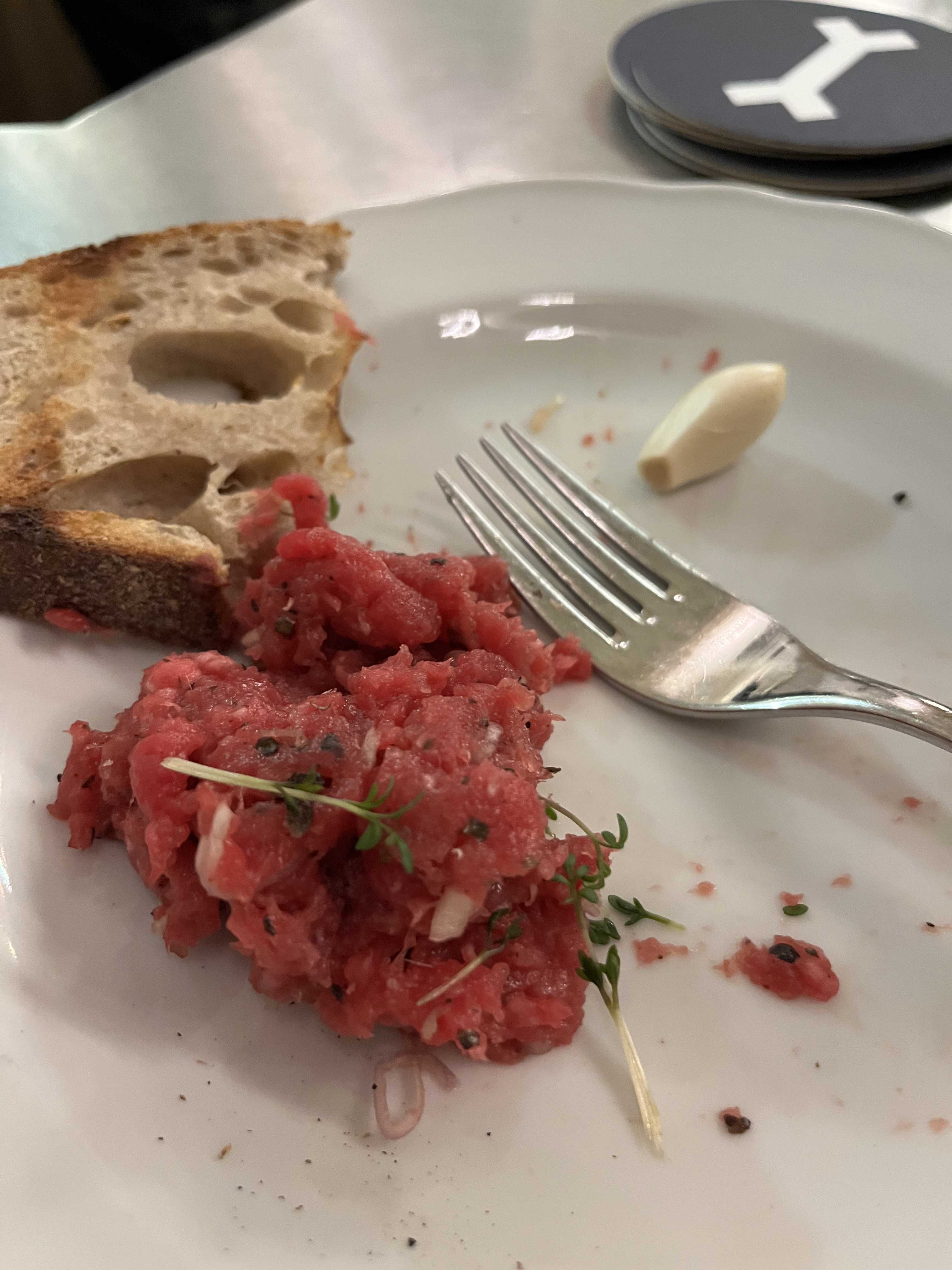 ![]() 普段そんなに肉を食べないのですが、 プラハに来たからにはこの店に来ないとと思い来ました。 注文の仕方は入口で細長い用紙をもらいます。 その後、その紙を持ってカウンターの列に並びます。 私はチェコ語も英語もできないので、Googleマップの画像を見せて注文しました。 少し待ったら料理を出してもらえました。 ビールは向かいのカウンターで注文します。 ビールは注文用紙の裏に何杯飲んだか記入される仕組みです。 これで肉とビールセットの出来上がりです。 席は自分で確保します。 人気店で常に満席なので少し難しいですが、待っていれば空きます。 ![]() 味は、美味しいです。しっかり肉に味が付いていて食べ応えがあります。 食べ方はパンににんにくをこすりつけ、その上に肉を好きなだけ乗せて食べるみたいです。 ただ、これは1人分でしょうか。 少し多い気がします。 ![]() Googleマップ先 お気に入りの記事を「いいね!」で応援しよう