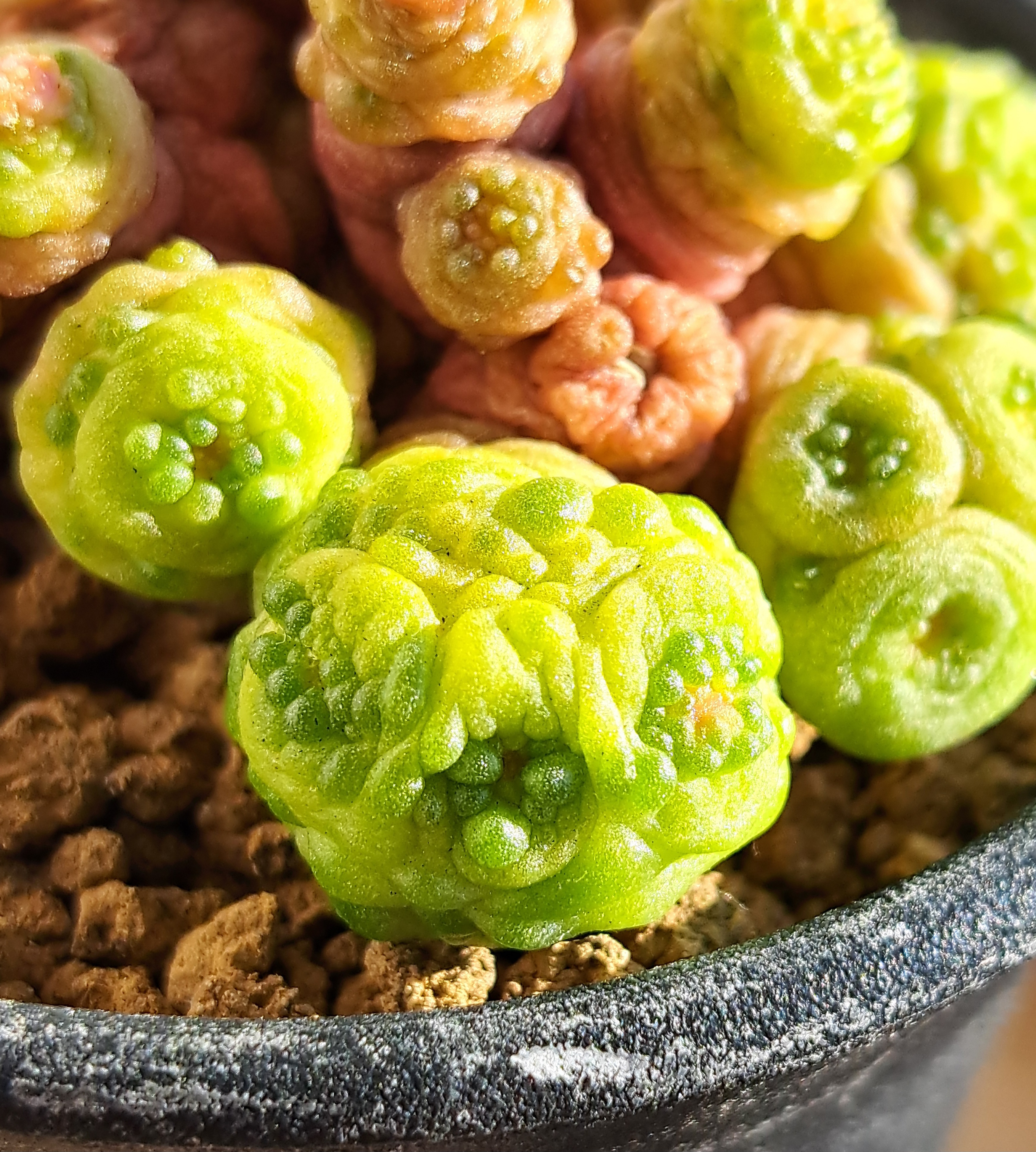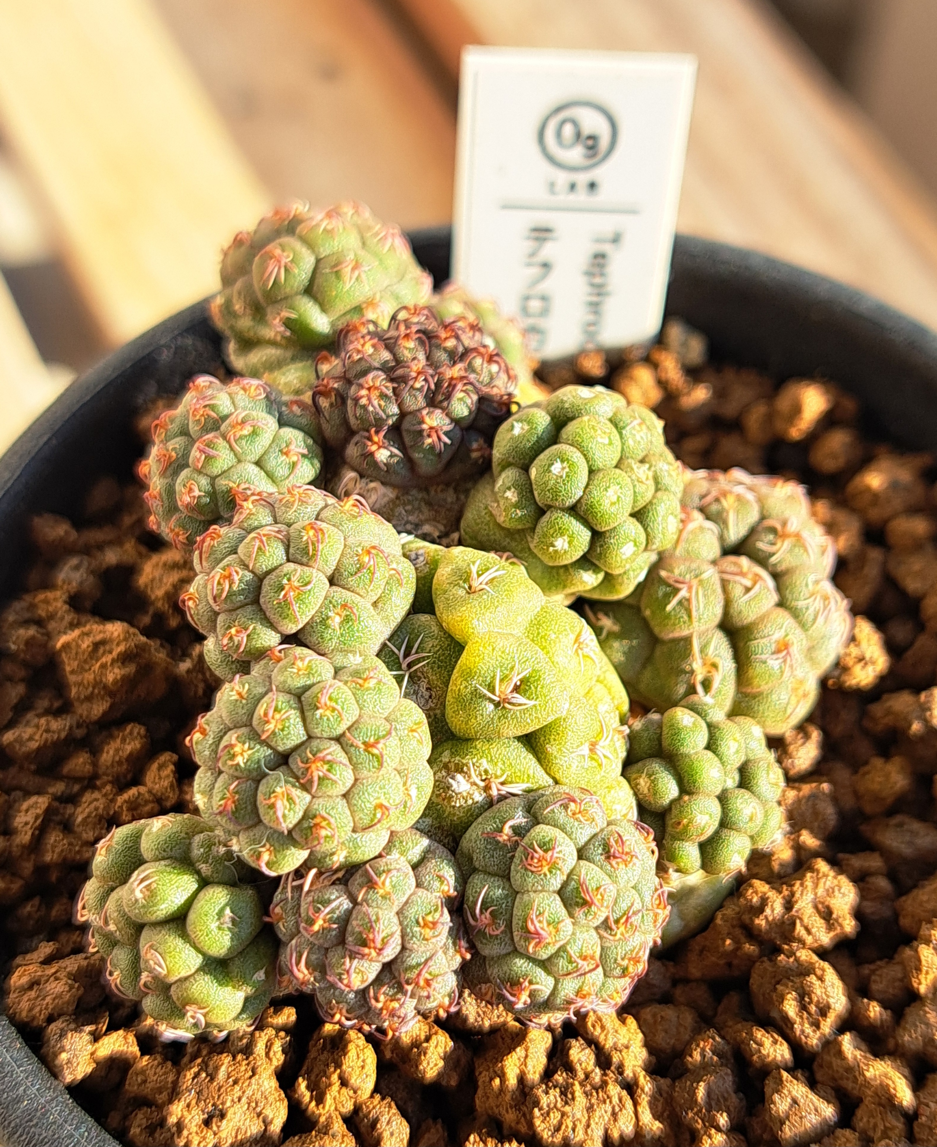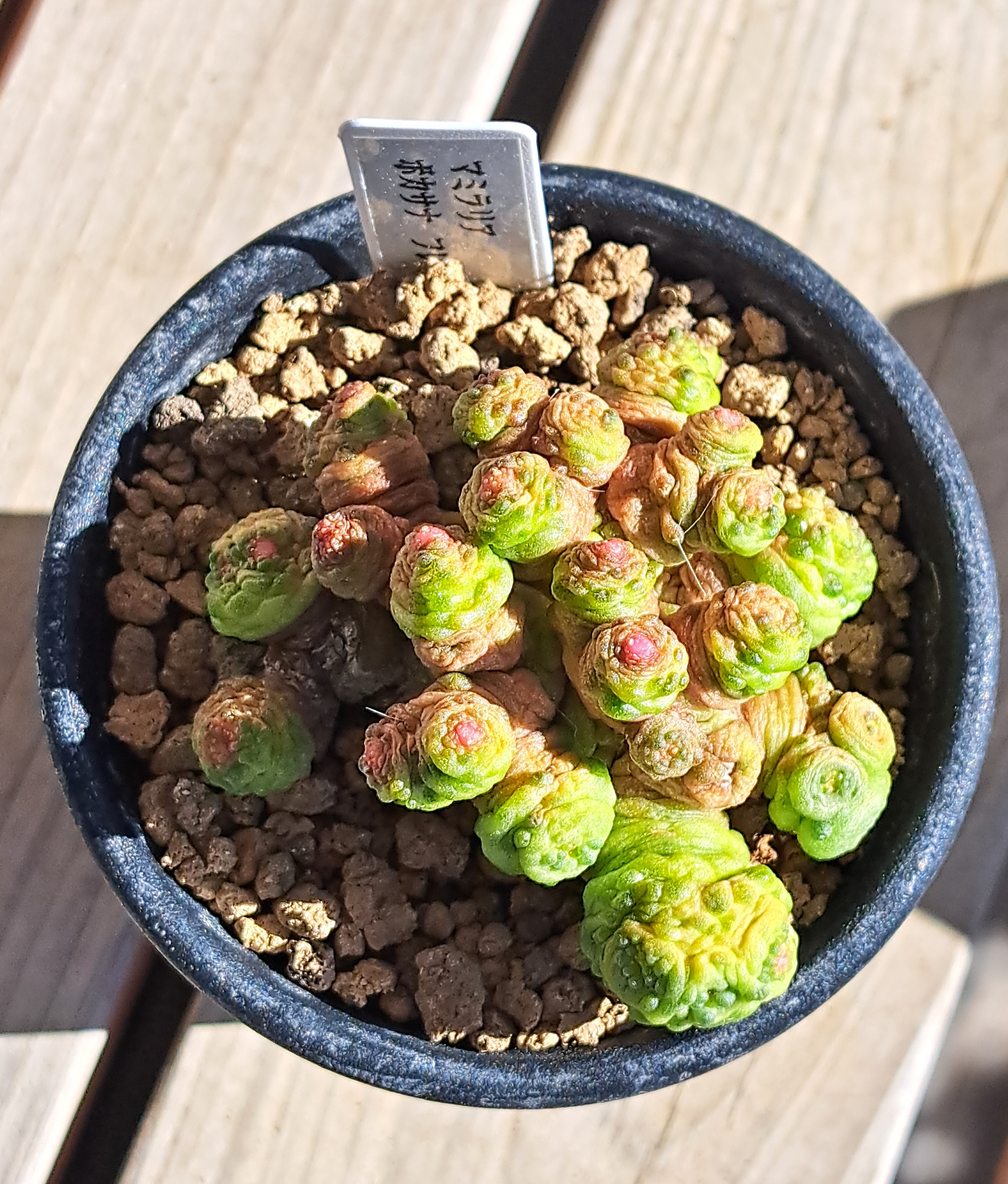 マミラリア・ボカサナフレッド。 ![]() いやあ、いつ見ても気持ち悪いね~。 もう完全にバケモノだよね。 植物とは思えない姿カタチをしたヤツは色々いるが、中でもコイツは最高峰ではないだろうか。 ![]() これなんか顔だよね。 片面がふさがったモンスター。 いるよこんなヤツ。 これもキショクワル~。 ![]() ぶよぶよした感じの突起たち。 分岐しているヤツもいる。 コレ、色もスゴいんだよね。 蛍光色のグリーン、イエロー、ピンク。 気持ち悪さに拍車をかける。 さて、このボサカナフレッド。 成長具合を見てみよう。 真冬なので動いていないとは思うが、終日室内で動くヤツもいるため確認。 12月14日。 ![]() 現在。 ![]() はい。 変化なし。 ま、そうだよね。 次。 テフロカクタス・ボンニアエ。 ![]() ボカサナフレッド同様ぽこぽこと仔を吹くサボテン。 ボカサナフレッドはモンストだがコイツは違うのかな。 単によく仔吹くというだけか。 成長していないだろうか。 チェックしよう。 10月17日。 ![]() 現在。 ![]() う~ん。 成長している箇所はないな。 残念だが当然か。 ひょっとしたら…と若干期待したのだが。 ていうか… 縮んでるよね? 鉢からはみ出していたのが収まっちゃっている。 冬で水を吸わずしぼんでしまったのか? ま、そうなんだろう。 ユーフォルビアのいくつかが室内で今も動いているのを見て期待し過ぎてしまった。 本来冬は動かないのだ。 当然だよね。 (観葉植物)マミラリア ボカサナ ’フレッド’ 2.5号(1鉢) 多肉植物 サボテン プナ(ブナ) ポンニアエ 2.5号(個体おまかせ1鉢) インテリアグリーン 室内園芸 オシャレ カワイイ 可愛い 【テフロカクタス】ゲオメトリクス サボテン ギフト 植物 苗 母の日 父の日 誕生日 プレゼント プチギフト 贈り物 ギフト植物 サボテン:テフロカクタス 長刺武蔵野*S サボテン:テフロカクタス 松笠団扇(まつかさうちわ)*S お気に入りの記事を「いいね!」で応援しよう