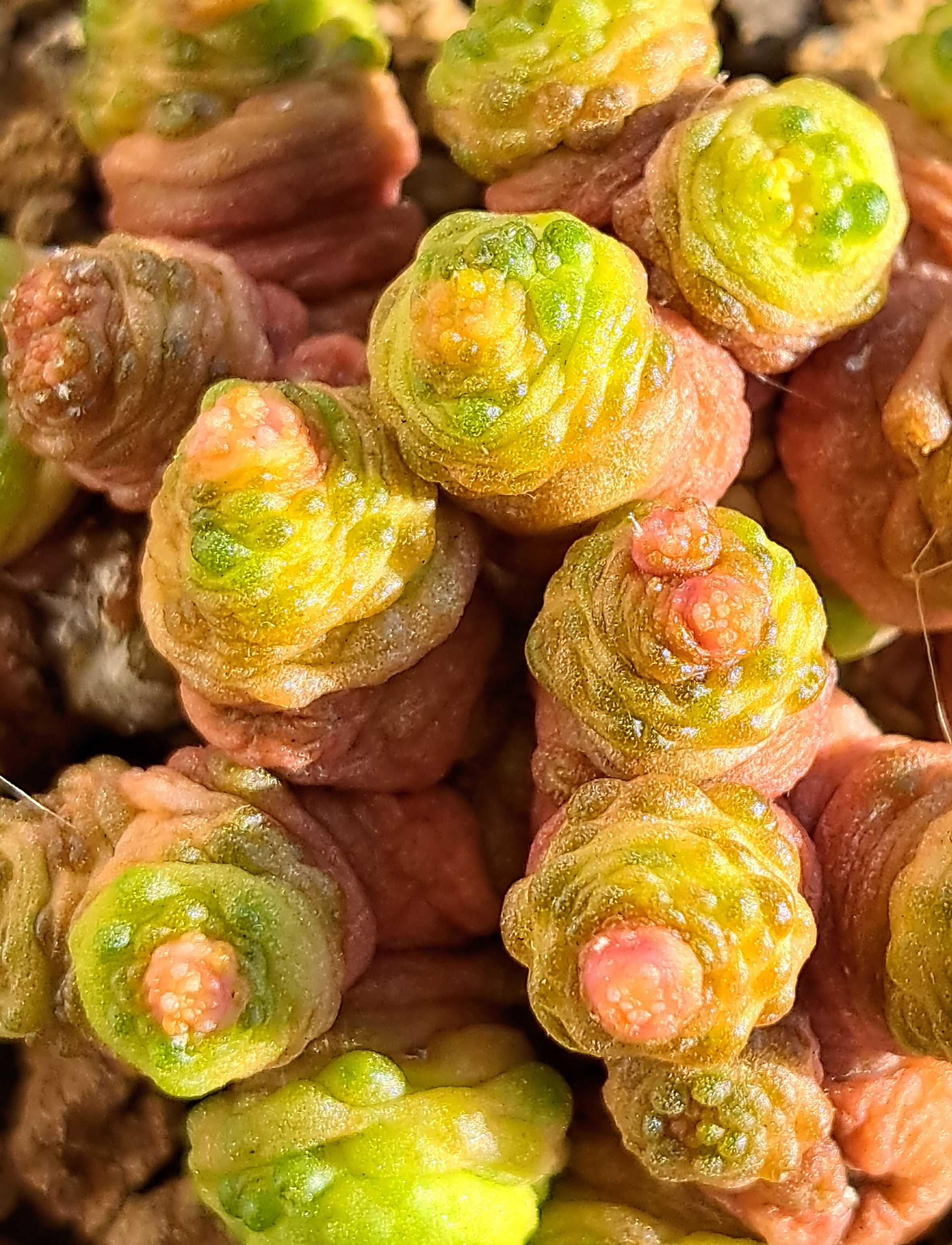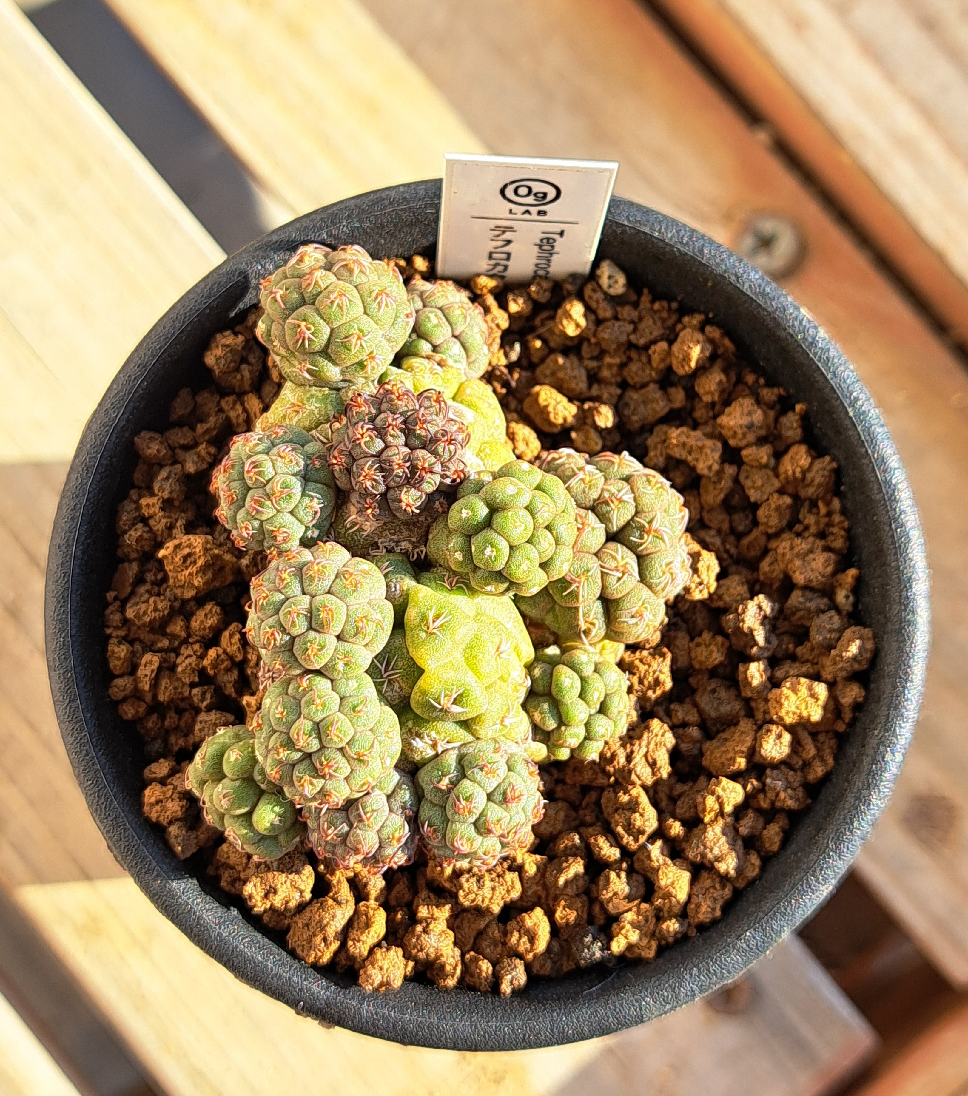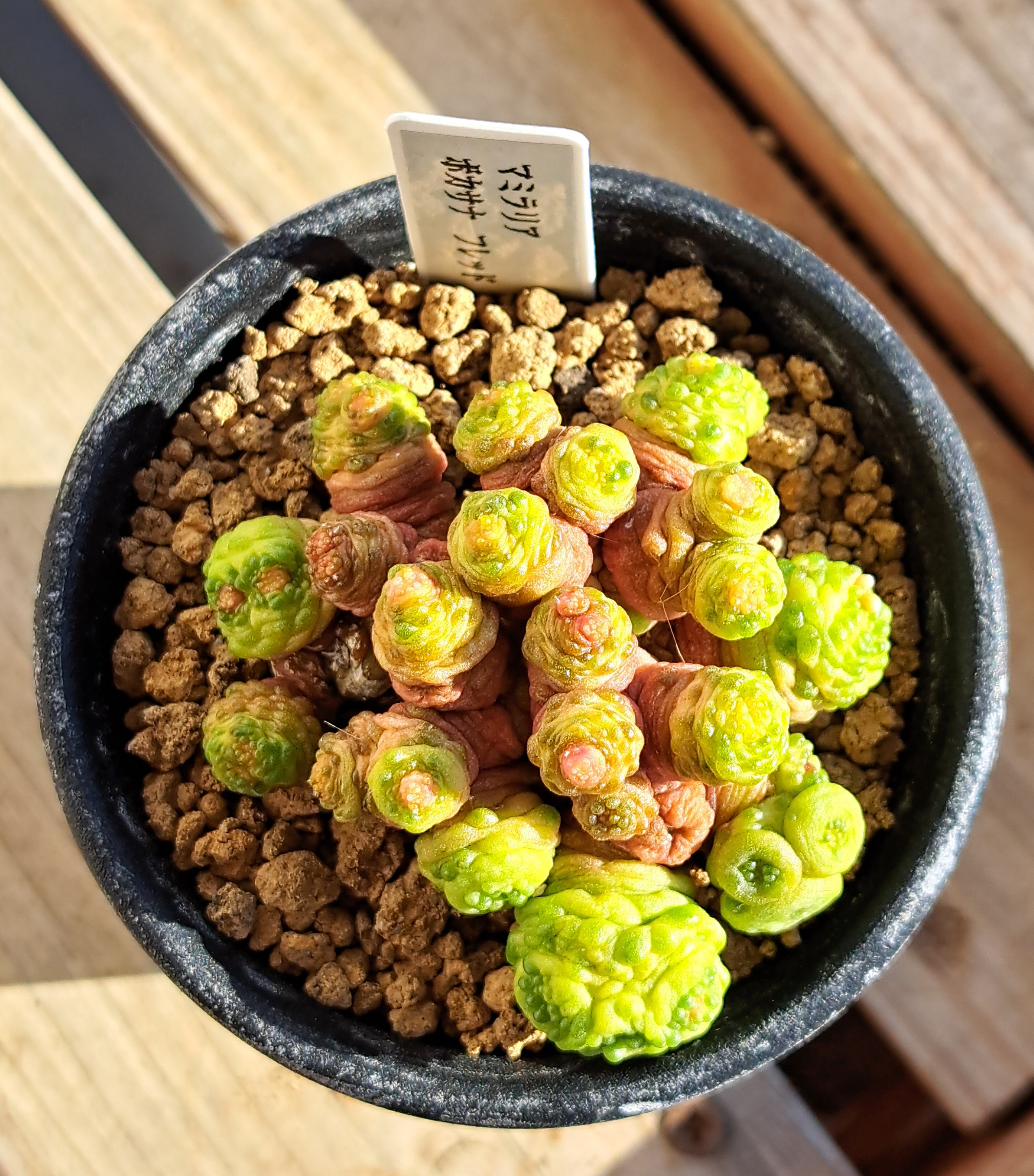 マミラリア・ボカサナフレッド。 ![]() いやあ、いつ見ても気持ち悪いね~。 もう完全にバケモノだよね。 植物とは思えない姿カタチをしたヤツは色々いるが、中でもコイツは最高峰ではないだろうか。 ![]() これなんか顔だよね。 片面がふさがったモンスター。 いるよこんなヤツ。 これもキショクワル~。 ![]() ぶよぶよした感じの突起たち。 分岐しているヤツもいる。 コレ、色もスゴいんだよね。 蛍光色のグリーン、イエロー、ピンク。 気持ち悪さに拍車をかける。 さて、このボサカナフレッド。 成長具合を見てみよう。 真冬なので動いていないとは思うが、終日室内で動くヤツもいるため確認。 12月14日。 ![]() 現在。 ![]() はい。 変化なし。 ま、そうだよね。 次。 テフロカクタス・ボンニアエ。 ![]() ボカサナフレッド同様ぽこぽこと仔を吹くサボテン。 ボカサナフレッドはモンストだがコイツは違うのかな。 単によく仔吹くというだけか。 成長していないだろうか。 チェックしよう。 10月17日。 ![]() 現在。 ![]() う~ん。 成長している箇所はないな。 残念だが当然か。 ひょっとしたら…と若干期待したのだが。 ていうか… 縮んでるよね? 鉢からはみ出していたのが収まっちゃっている。 冬で水を吸わずしぼんでしまったのか? ま、そうなんだろう。 ユーフォルビアのいくつかが室内で今も動いているのを見て期待し過ぎてしまった。 本来冬は動かないのだ。 当然だよね。 (観葉植物)マミラリア ボカサナ ’フレッド’ 2.5号(1鉢) 多肉植物 サボテン プナ(ブナ) ポンニアエ 2.5号(個体おまかせ1鉢) インテリアグリーン 室内園芸 オシャレ カワイイ 可愛い 【テフロカクタス】ゲオメトリクス サボテン ギフト 植物 苗 母の日 父の日 誕生日 プレゼント プチギフト 贈り物 ギフト植物 サボテン:テフロカクタス 長刺武蔵野*S サボテン:テフロカクタス 松笠団扇(まつかさうちわ)*S お気に入りの記事を「いいね!」で応援しよう