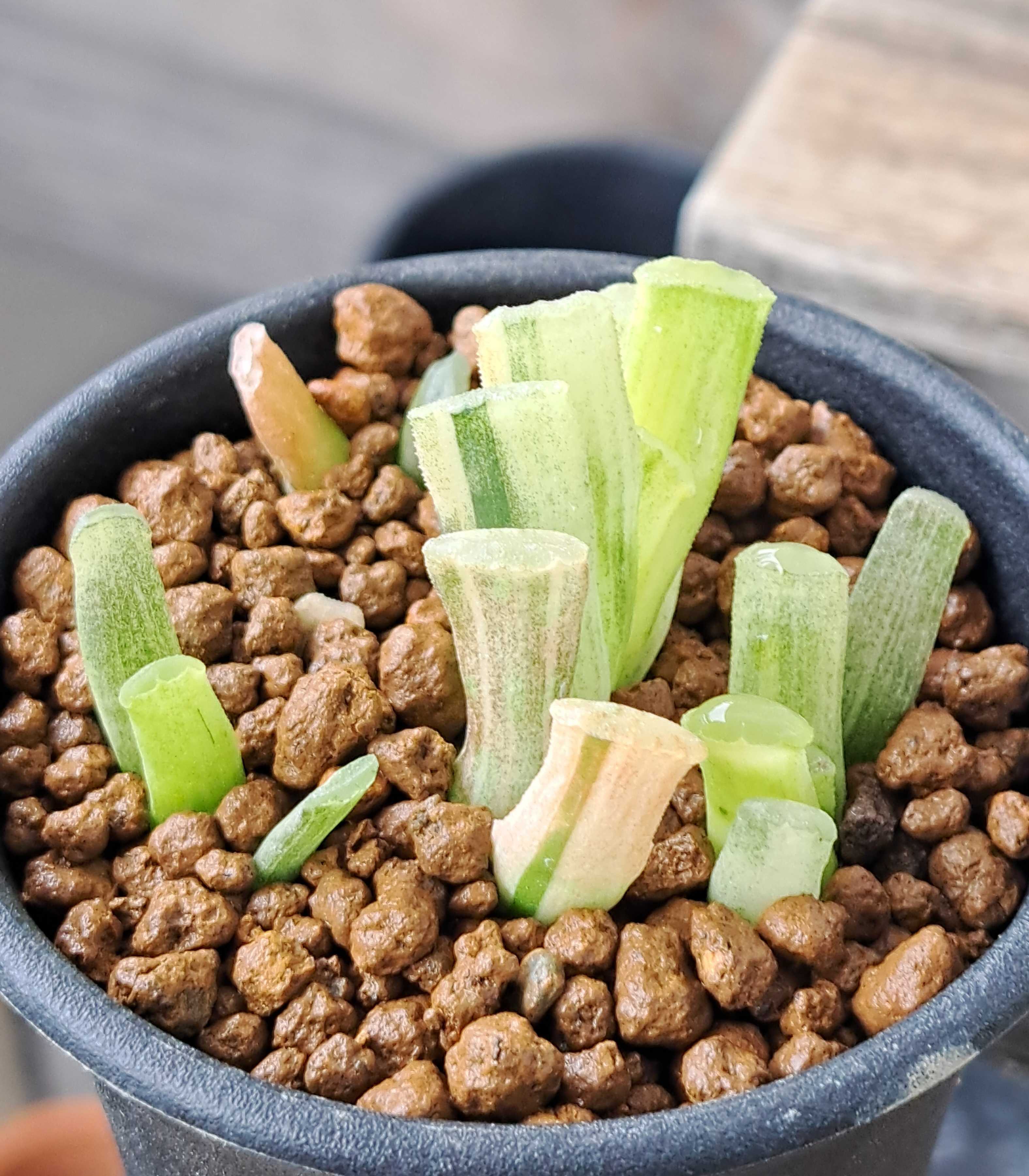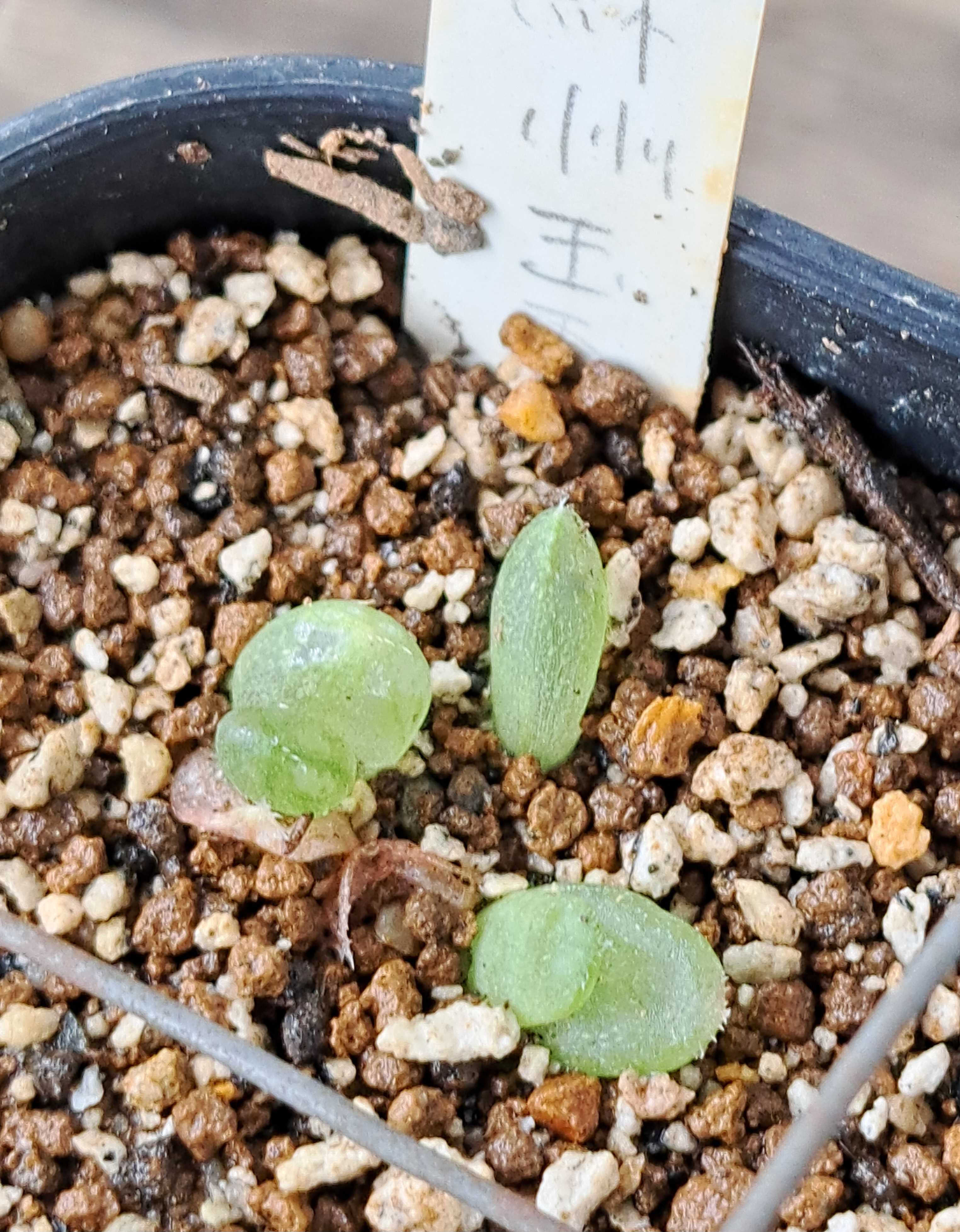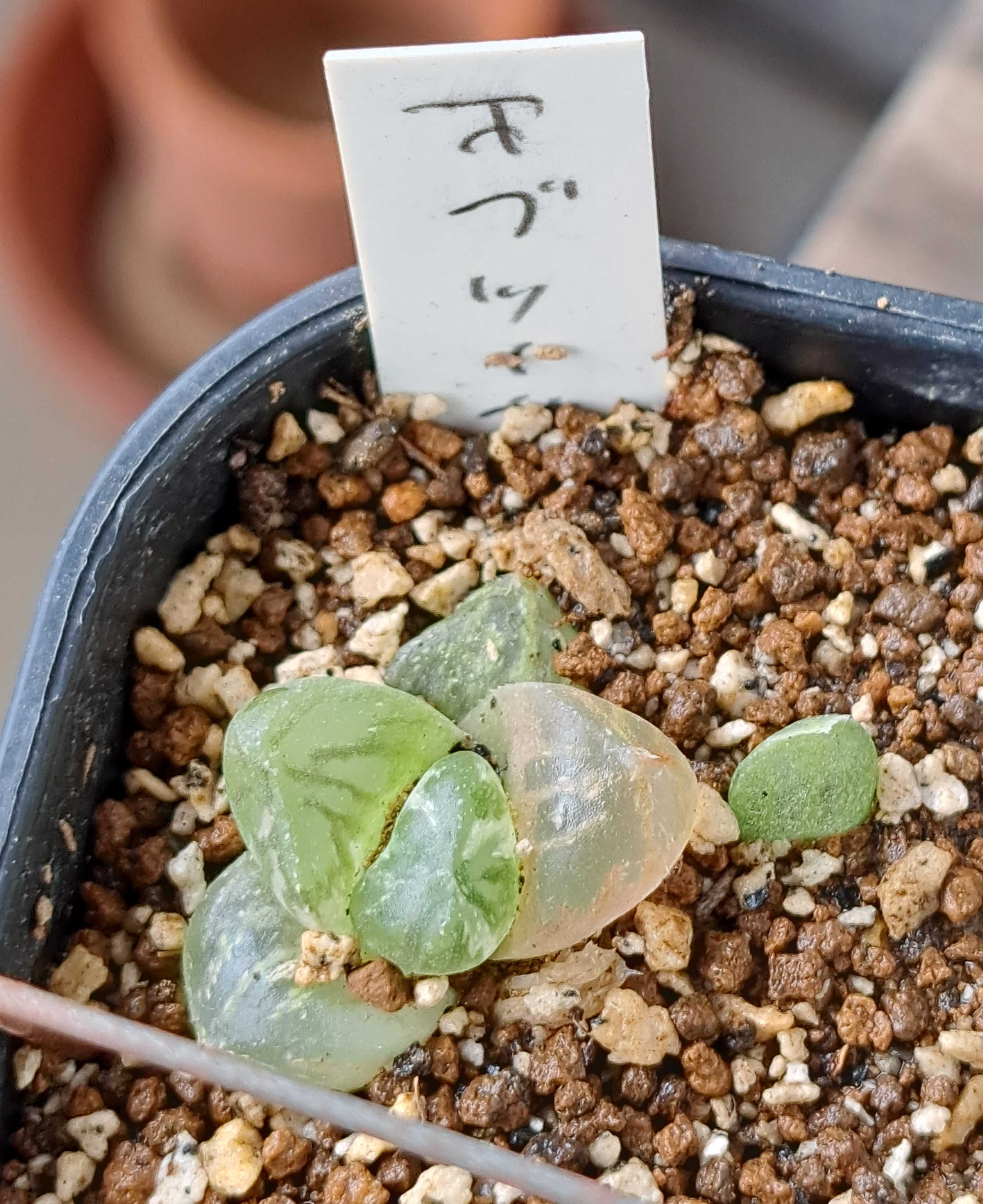 しばらく植え替えていなかったハオルチアをいくつか植え替えたので見てみよう。 画像は全て植え替え後だ。 4種寄せ植えから。 ![]() 葉挿しと実生の4種。 播種後一回も植え替えていなかったので植え替え。 めちゃ小っちゃいがいずれも数年経っている。 ひとつずつ見ていく。 オブツーサ錦。 ![]() 2022年5月葉挿し開始。 3年5ヶ月でコレだ。 ヘタクソか? いや、間違いなくヘタクソだ。 なぜならコイツ↓も2年4ヶ月経過しているのだ。 蘇州玉露錦。 ![]() 2023年6月播種。 実生だが2年でコレはないだろう。 ヒドイ。 白肌選抜ベヌスタ×GM292 。 優良ベヌスタの掛け合わせだがこれまた時間が経っている。2022年7月播種。 実に3年と3ヶ月が経過。 ヘタクソ確定だ。 そして一番ヒドイのがコレ。 プラチナ×ベヌスタ。 ![]() 最近芽が出たばかりに見えるがこれまた2年以上経っている。 どれも全然育っていない。 なので土を更新し再チャレンジだ。 荒磯葉挿し。 ![]() 確か2020年12月ごろ挿したもので5年近くが経過している。 5年でこれか?という感じだがさっきの4種植えよりはだいぶマシだ。 ![]() それらしい模様が出てきている。 この模様が良いのだ。 フツーの玉扇。 ![]() それぞれ単独植えにしていたが全然成長しないし逆に下葉が枯れてきたので寄せ植えに。 4鉢→1鉢に減って良かった。 大黒M字。 ![]() カキコ。 寄せ植えだったのを単独植えに。 ![]() なかなか良い窓模様。 デカくなるとM字型になる。 玉扇イルミネーション斑。 ![]() これも全然成長しないヤツ。 カキコと葉挿しなのだがもう2、3年経っている。 ![]() 真ん中のヤツは単独植えにしていたのだが変化が全くない。 鉢数も減るしこの際寄せ植えにした。 こうやって見るとホント成長してないヤツばっかだな。 土も更新したことだし少しは成長してほしいものだ。 頼むよみんな。 (多肉植物)韓国苗 ハオルチア 玉扇 トランカータ ホワイトドラゴン(1株) (多肉植物)韓国苗 ハオルチア 玉扇 トランカータ 白亜(1株) (多肉植物)韓国苗 ハオルチア 玉扇 トランカータ 玄武(1株) 多肉植物:ハオルチア 玉扇 駿府*幅8cm 現品!一品限り 多肉植物:ハオルチア 玉扇 白紋*幅6.5cm 現品!一品限り お気に入りの記事を「いいね!」で応援しよう