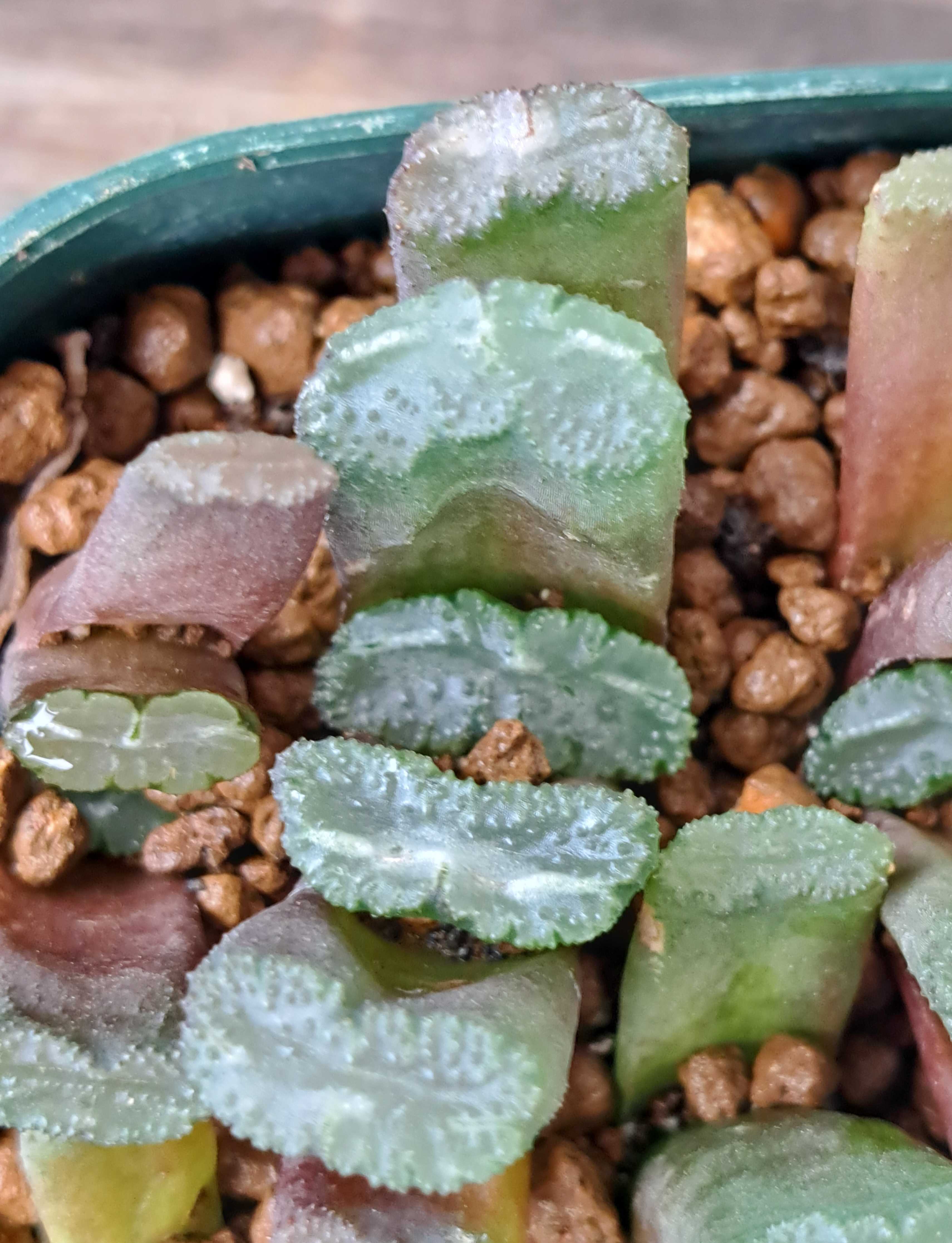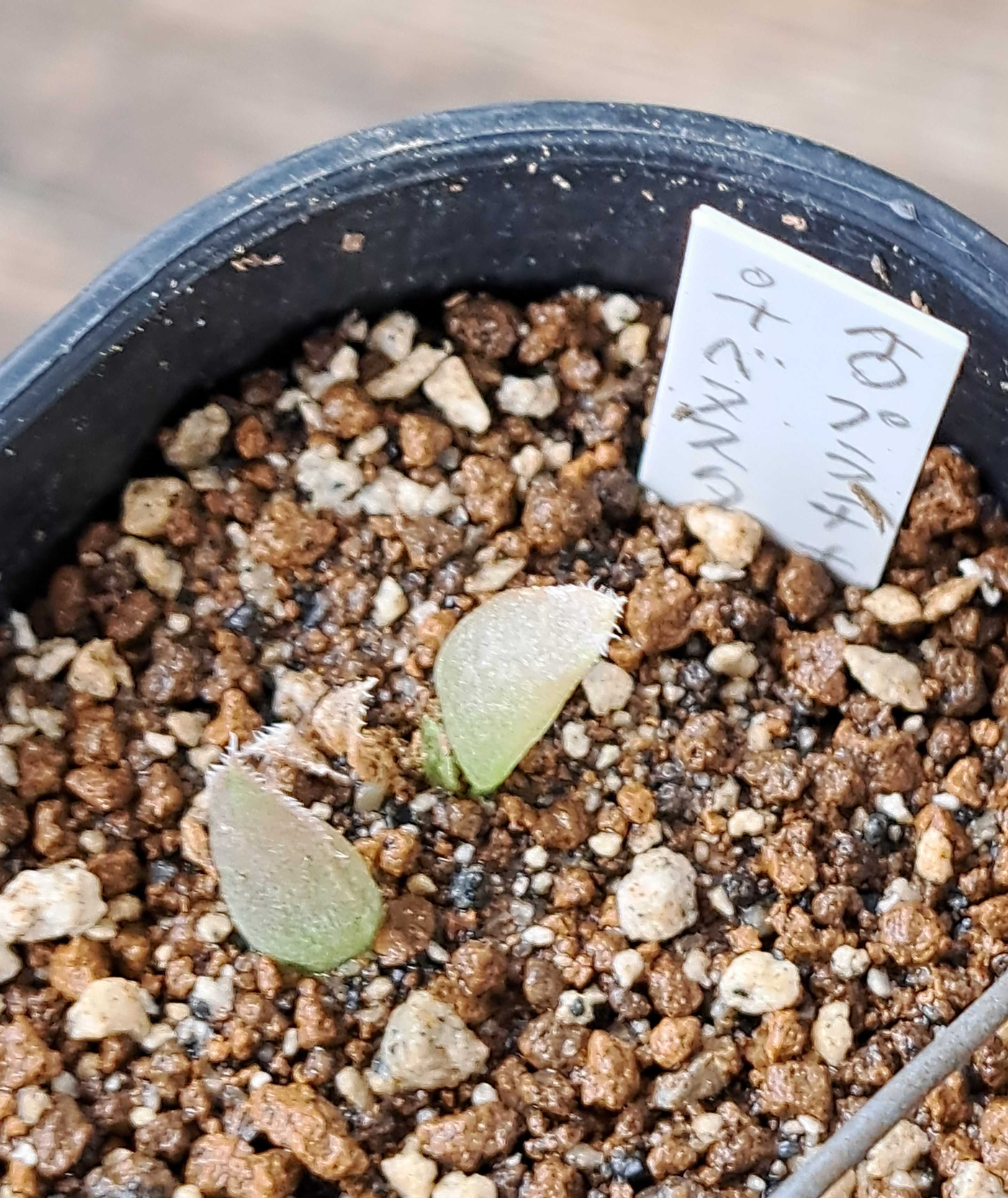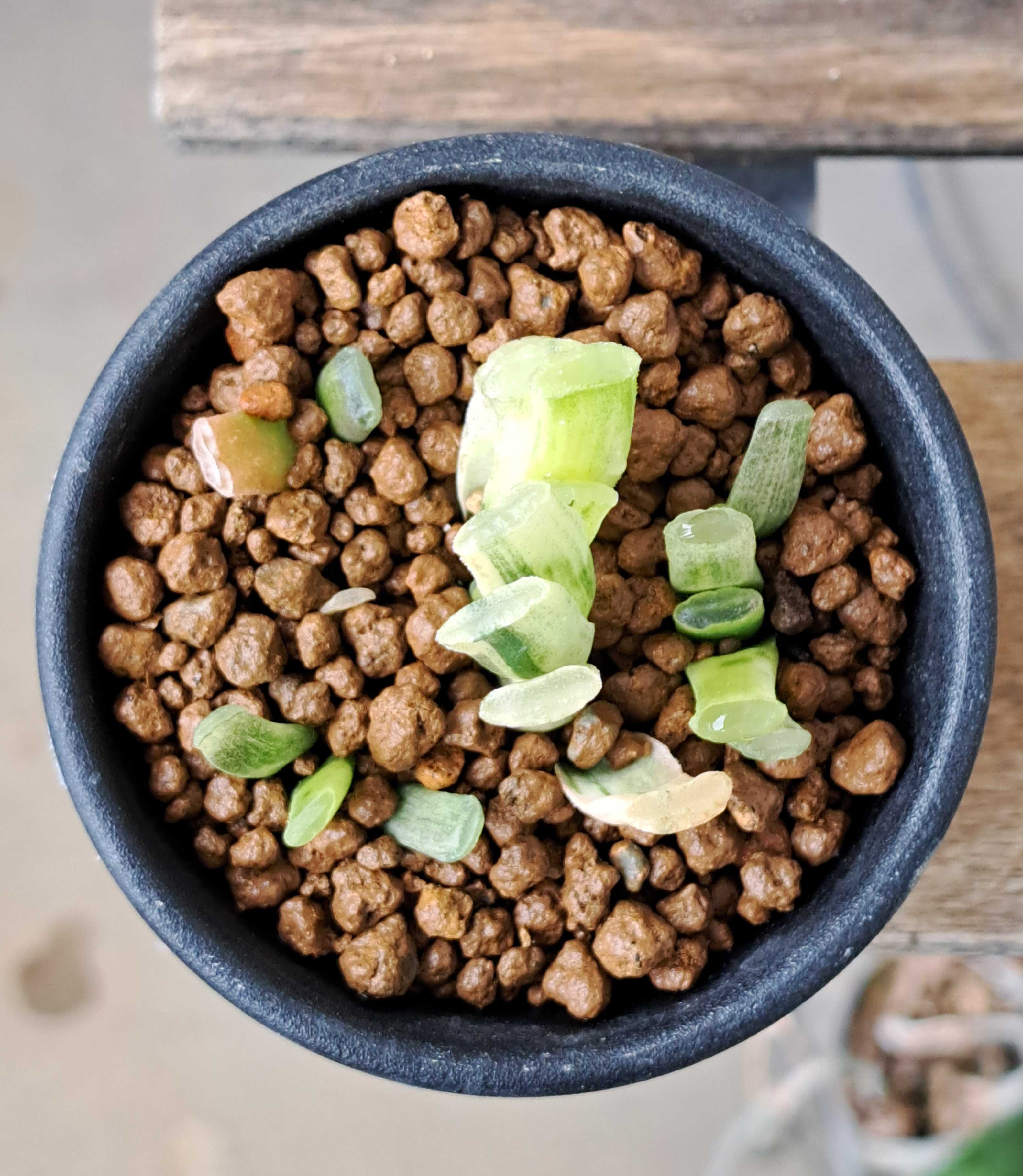しばらく植え替えていなかったハオルチアをいくつか植え替えたので見てみよう。 画像は全て植え替え後だ。 4種寄せ植えから。 ![]() 葉挿しと実生の4種。 播種後一回も植え替えていなかったので植え替え。 めちゃ小っちゃいがいずれも数年経っている。 ひとつずつ見ていく。 オブツーサ錦。 ![]() 2022年5月葉挿し開始。 3年5ヶ月でコレだ。 ヘタクソか? いや、間違いなくヘタクソだ。 なぜならコイツ↓も2年4ヶ月経過しているのだ。 蘇州玉露錦。 ![]() 2023年6月播種。 実生だが2年でコレはないだろう。 ヒドイ。 白肌選抜ベヌスタ×GM292 。 優良ベヌスタの掛け合わせだがこれまた時間が経っている。2022年7月播種。 実に3年と3ヶ月が経過。 ヘタクソ確定だ。 そして一番ヒドイのがコレ。 プラチナ×ベヌスタ。 ![]() 最近芽が出たばかりに見えるがこれまた2年以上経っている。 どれも全然育っていない。 なので土を更新し再チャレンジだ。 荒磯葉挿し。 ![]() 確か2020年12月ごろ挿したもので5年近くが経過している。 5年でこれか?という感じだがさっきの4種植えよりはだいぶマシだ。 ![]() それらしい模様が出てきている。 この模様が良いのだ。 フツーの玉扇。 ![]() それぞれ単独植えにしていたが全然成長しないし逆に下葉が枯れてきたので寄せ植えに。 4鉢→1鉢に減って良かった。 大黒M字。 ![]() カキコ。 寄せ植えだったのを単独植えに。 ![]() なかなか良い窓模様。 デカくなるとM字型になる。 玉扇イルミネーション斑。 ![]() これも全然成長しないヤツ。 カキコと葉挿しなのだがもう2、3年経っている。 ![]() 真ん中のヤツは単独植えにしていたのだが変化が全くない。 鉢数も減るしこの際寄せ植えにした。 こうやって見るとホント成長してないヤツばっかだな。 土も更新したことだし少しは成長してほしいものだ。 頼むよみんな。 (多肉植物)韓国苗 ハオルチア 玉扇 トランカータ ホワイトドラゴン(1株) (多肉植物)韓国苗 ハオルチア 玉扇 トランカータ 白亜(1株) (多肉植物)韓国苗 ハオルチア 玉扇 トランカータ 玄武(1株) 多肉植物:ハオルチア 玉扇 駿府*幅8cm 現品!一品限り 多肉植物:ハオルチア 玉扇 白紋*幅6.5cm 現品!一品限り お気に入りの記事を「いいね!」で応援しよう